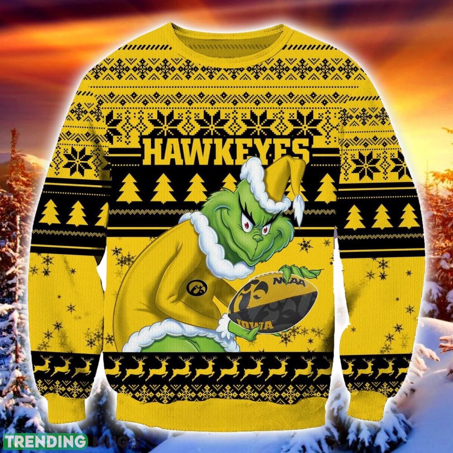 NCAA Iowa Hawkeyes Grinch Ugly Christmas Sweater Trending Sweater For 2023 Christmas Holidays Informations: