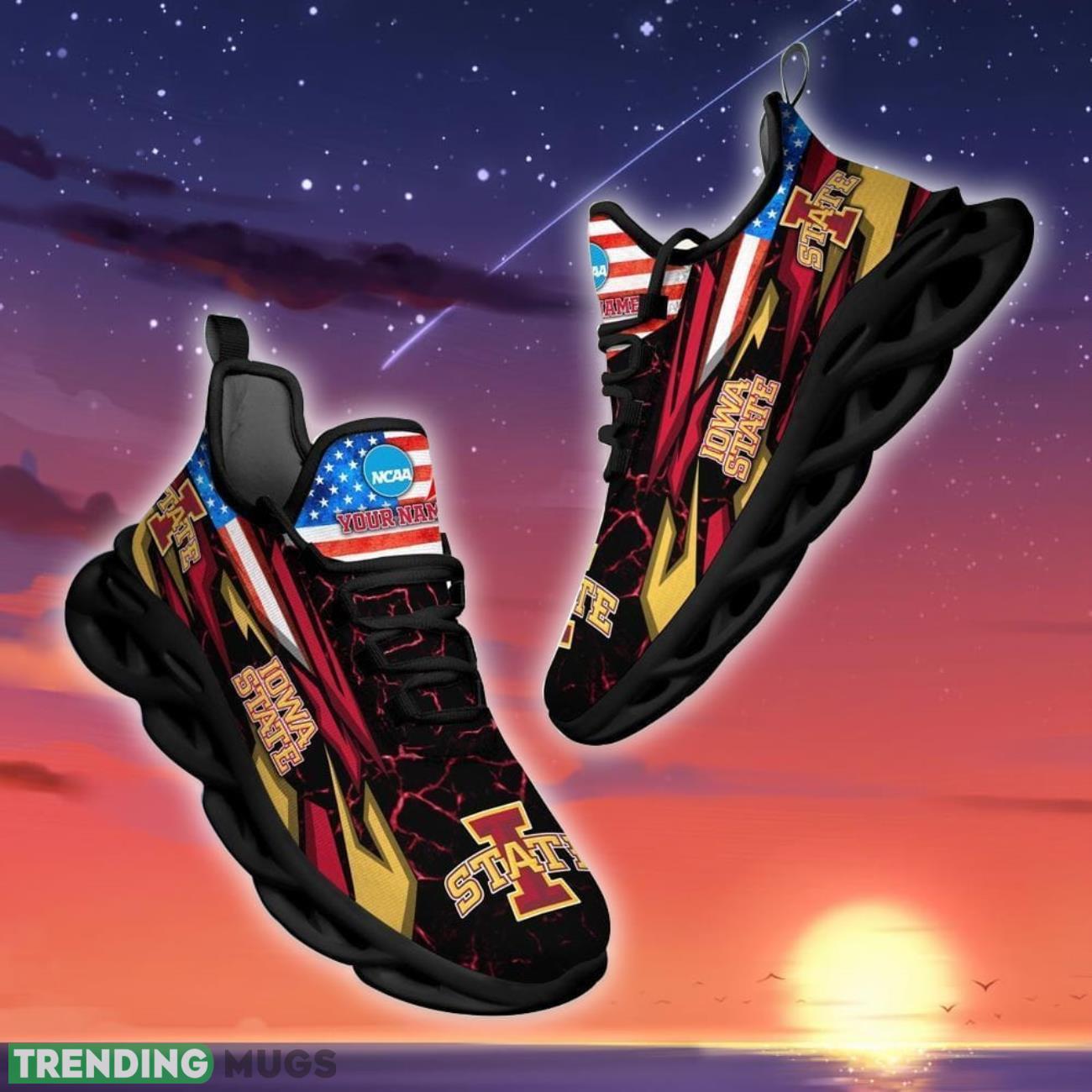 NCAA Iowa State Cyclones Logo And Flag Custom Name Max Soul Shoes Gift For Fan information: