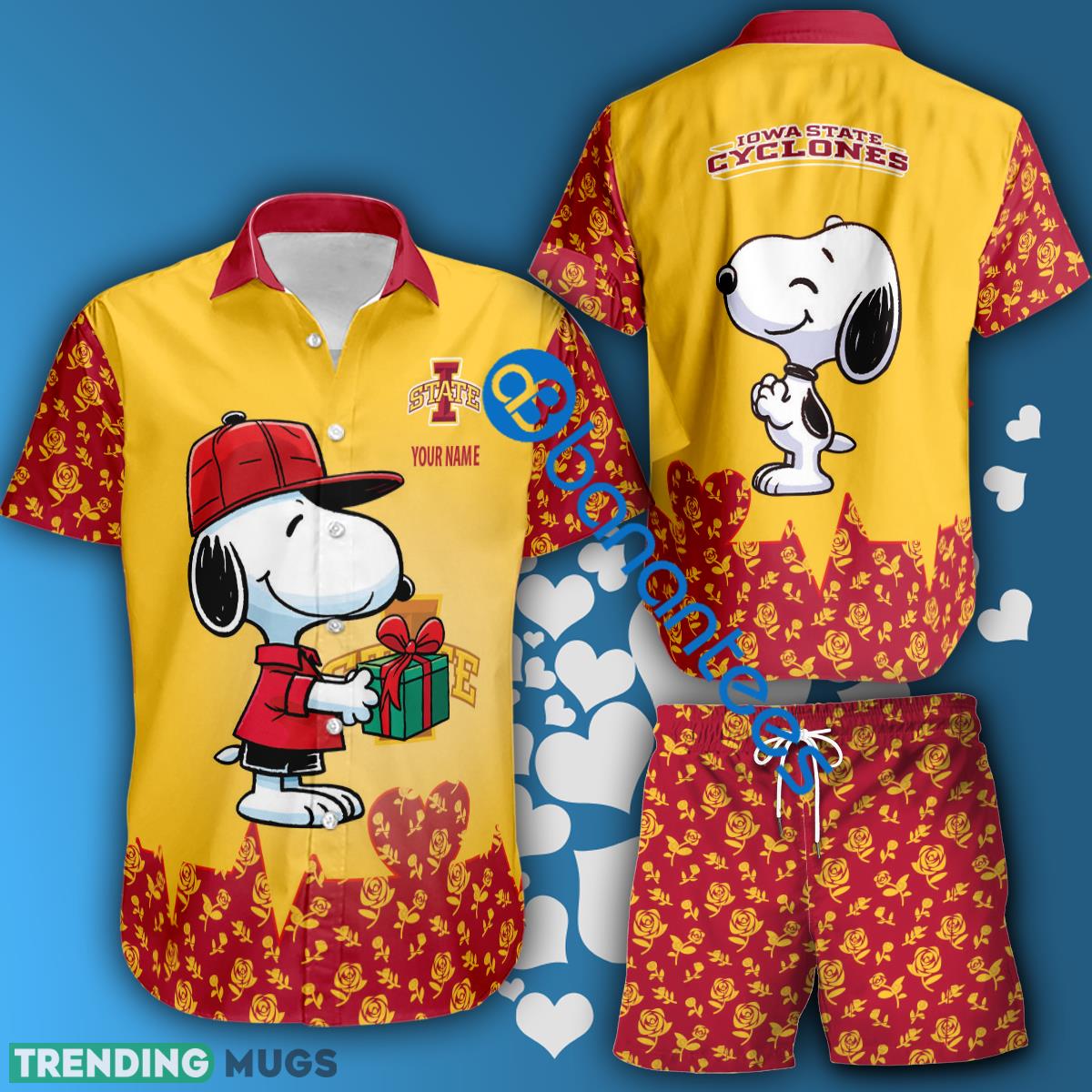 NCAA Iowa State Cyclones Snoopy Gift Boyfriend And Girlfriend Combo Hawaiian Shirt And Short Custom Name