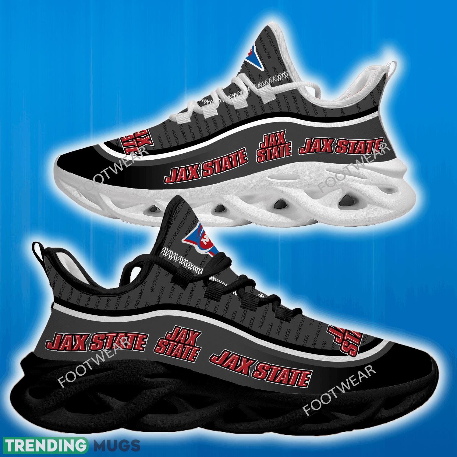 Elevate your style and show off your team pride with the NCAA Jacksonville State Gamecocks Logo New Text Max Soul Shoes!