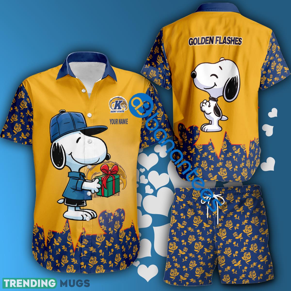 Whether you’re a die-hard Kent State fan or simply looking for a trendy and eye-catching outfit, the NCAA Kent State Golden Flashes Snoopy Gift Boyfriend and Girlfriend Hawaiian Shirt and Short Set Custom Name is a must-have addition to your wardrobe. So, why wait? Grab yours now and let your Kent State pride shine through!