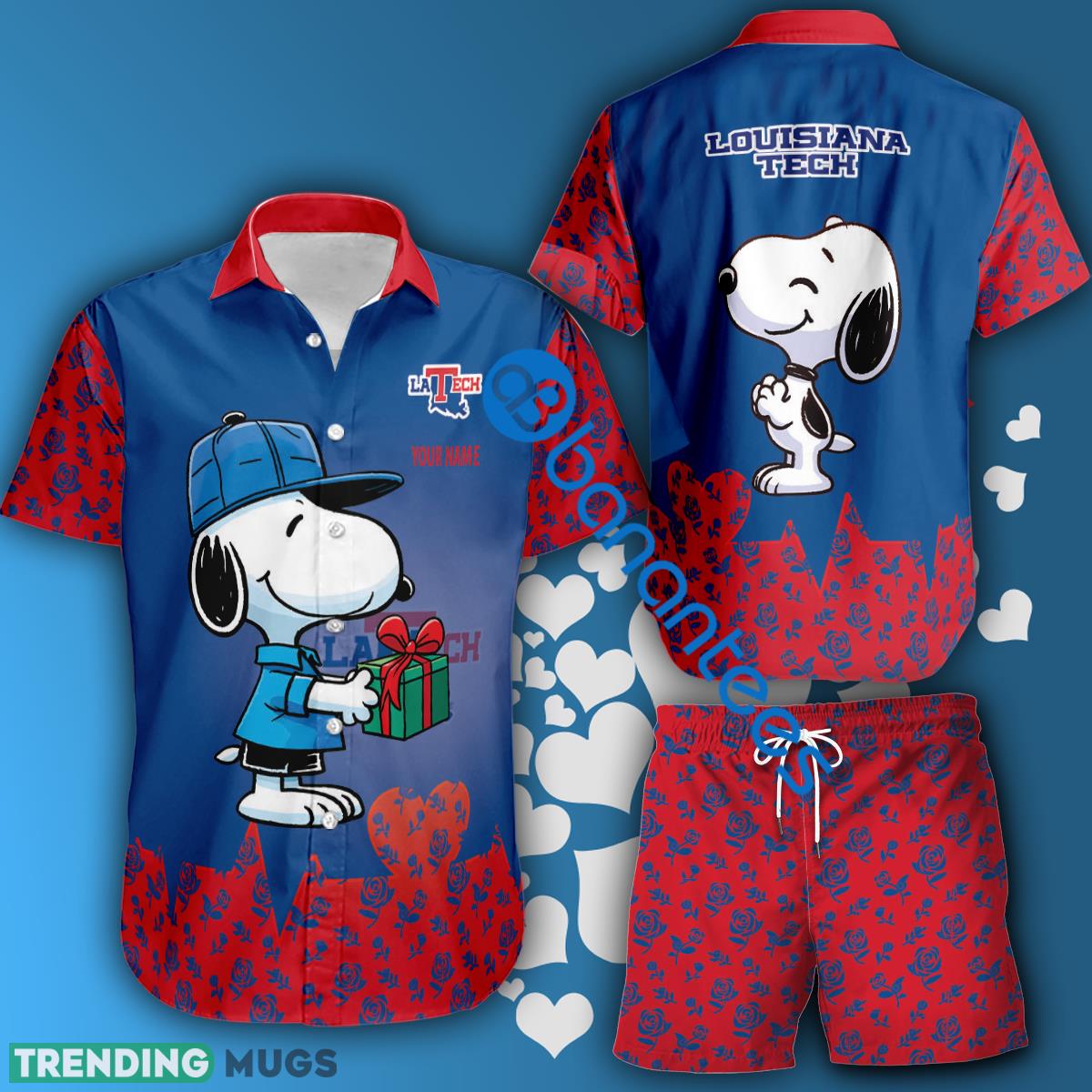 NCAA Louisiana Tech Bulldogs Snoopy Gift Boyfriend And Girlfriend Combo Hawaiian Shirt And Short Custom Name Details: