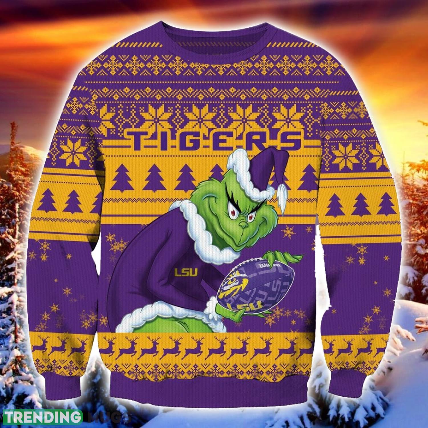 NCAA LSU Tigers Grinch Ugly Christmas Sweater Trending Sweater For 2023 Christmas Holidays Product Photo 1