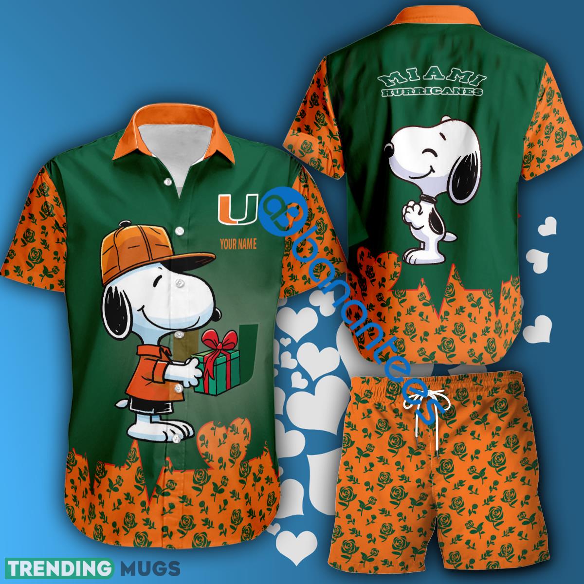 Don’t miss out on this must-have item for any Miami (FL) Hurricanes supporter. Order your NCAA Miami (FL) Hurricanes Snoopy Gift Boyfriend And Girlfriend Hawaiian Shirt And Short Set Custom Name today and let your love for the team shine bright wherever you go!