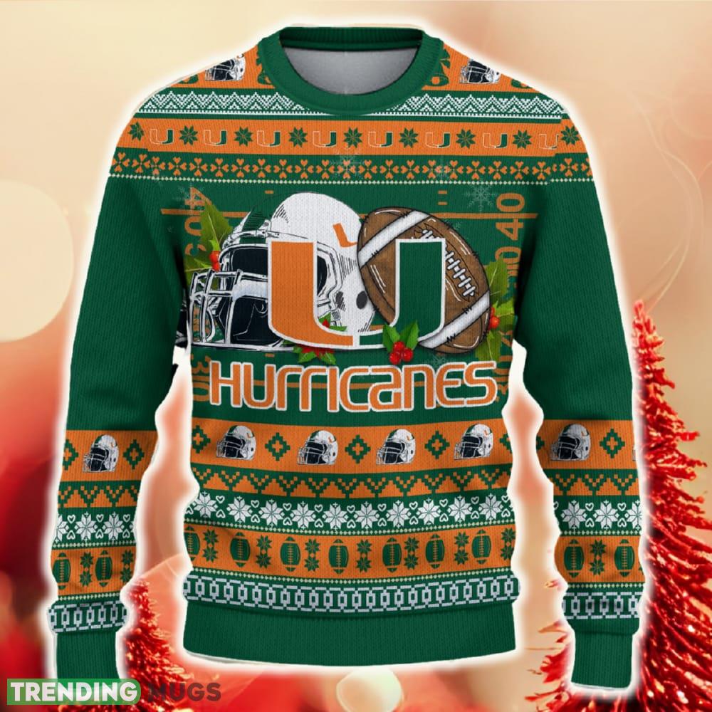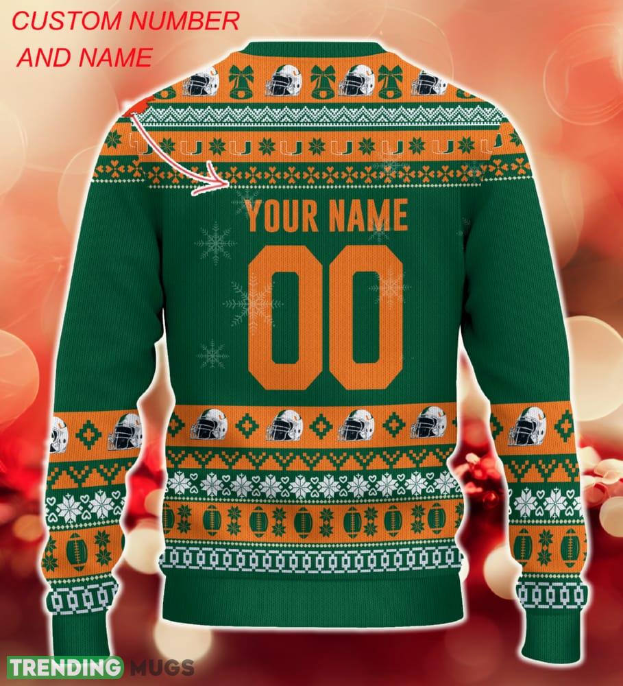 NCAA Miami Hurricanes Christmas Ugly Sweater Custom Number And Name Gift For Fans Holidays Informations: