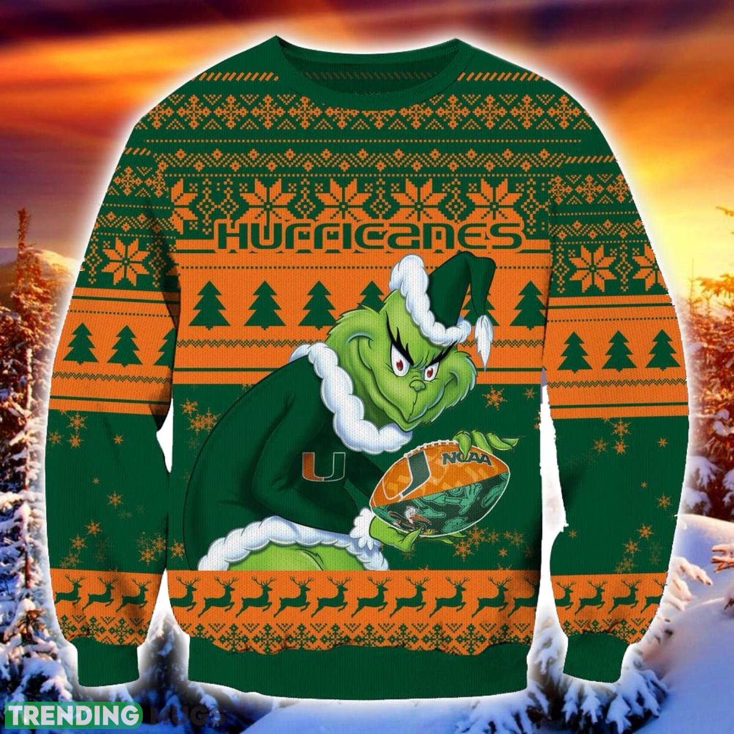 NCAA Miami Hurricanes Grinch Ugly Christmas Sweater Trending Sweater For 2023 Christmas Holidays Product Photo 1