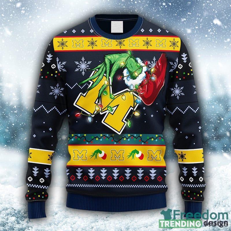 NCAA Michigan Wolverines Grinch Christmas Ugly 3D Knitted Sweater For Men And Women Gift Ugly Christmas – NCAA Michigan Wolverines Grinch Christmas Ugly Sweater_1