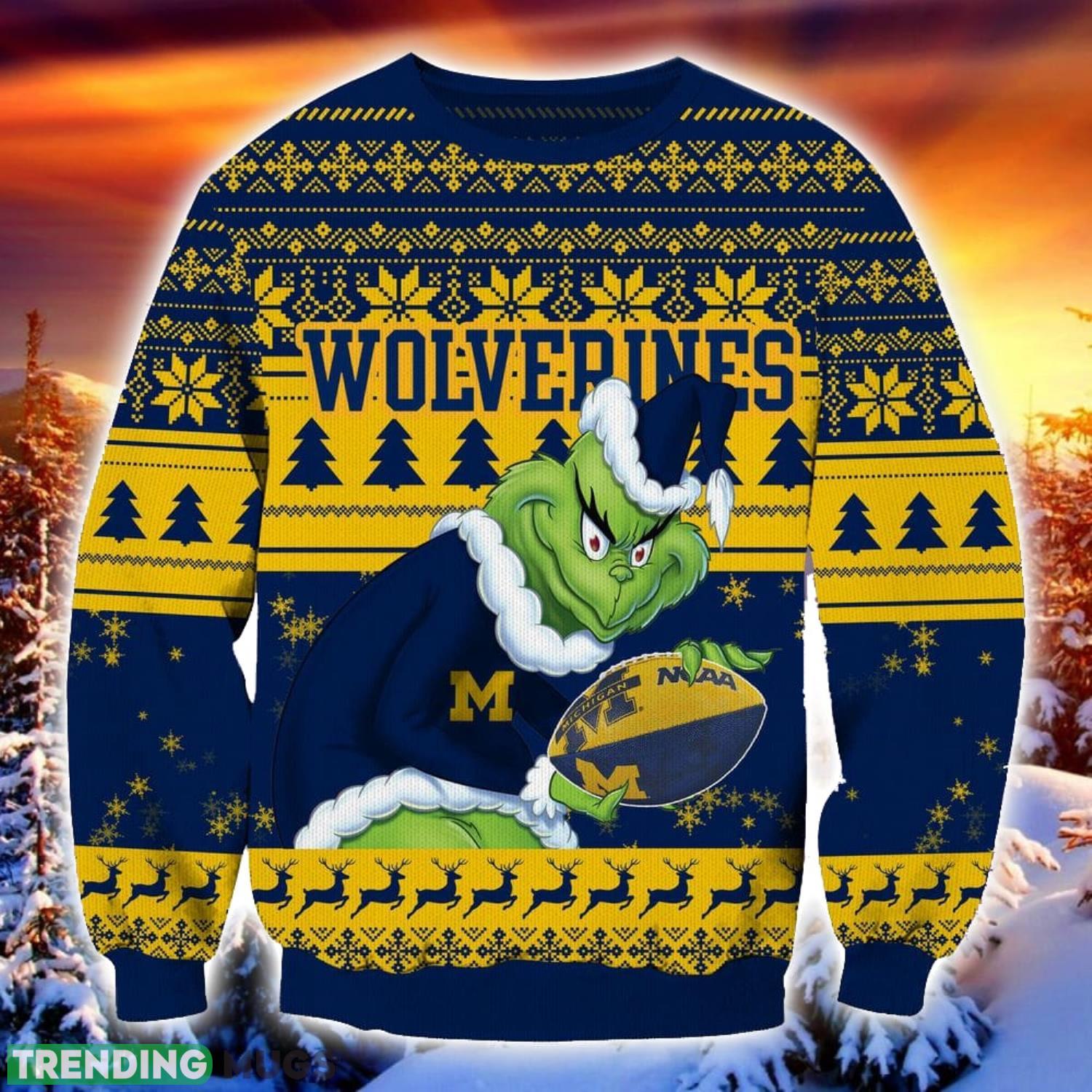 NCAA Michigan Wolverines Logo Grinch Ugly Christmas Sweater Trending Sweater For 2023 Christmas Holidays 3D Sweater