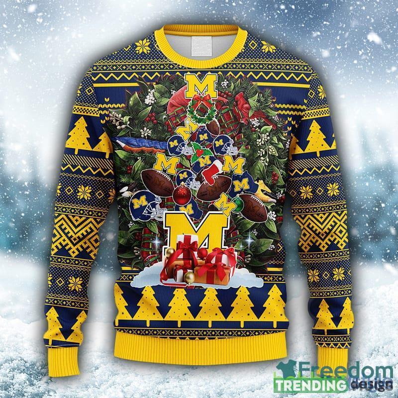 Some of the NCAA Michigan Wolverines Tree Fleece 3D Knitted Sweater For Men And Women Gift Ugly Christmas photos