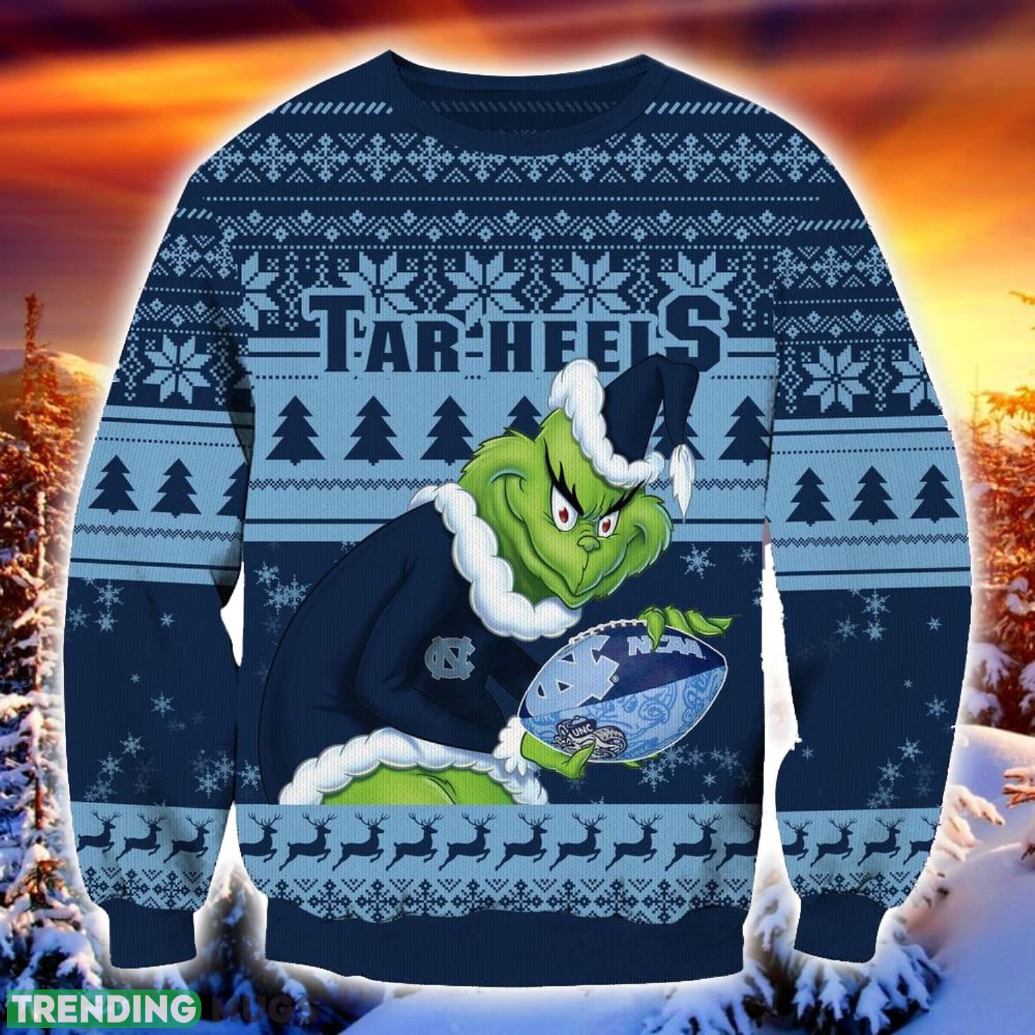 NCAA North Carolina Tar Heels Grinch Ugly Christmas Sweater Trending Sweater For 2023 Christmas Holidays 3D Sweater