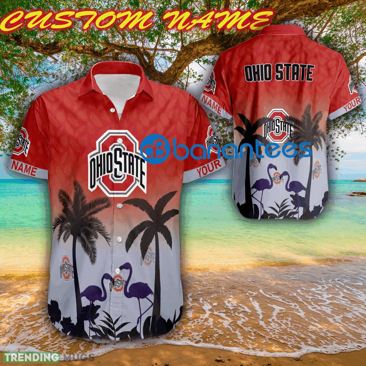 NCAA Ohio State Buckeyes Islander Logo AOP Hawaiian Shirt Gift For Fans Custom Name Hawaiian Shirt