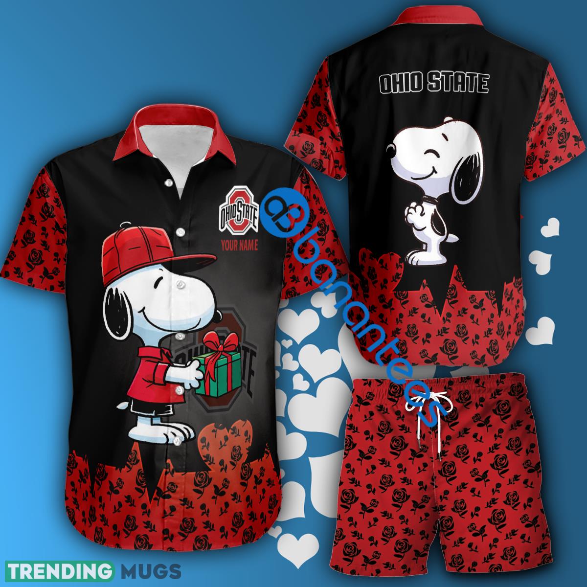 NCAA Ohio State Buckeyes Snoopy Gift Boyfriend And Girlfriend Hawaiian Shirt And Short Set Custom Name Details: