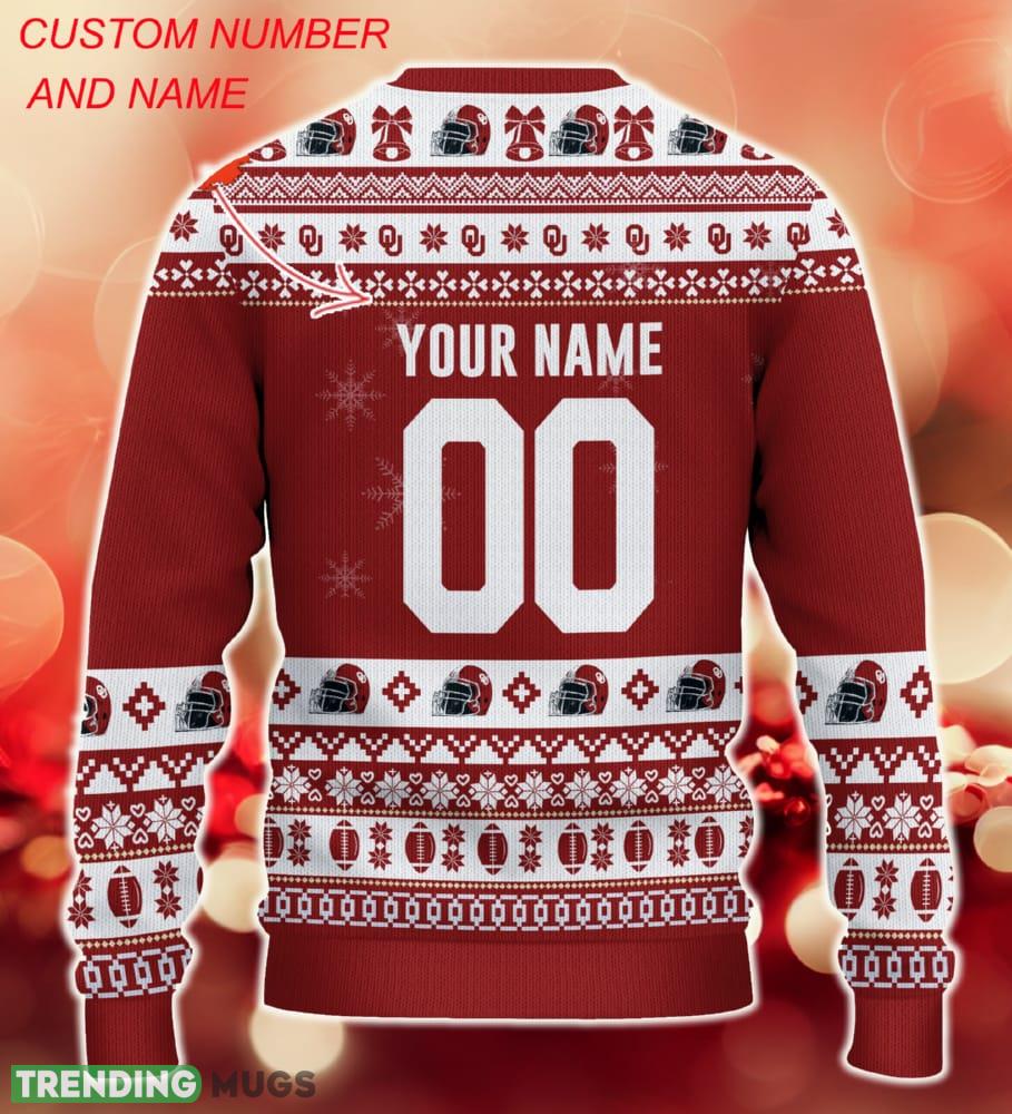 Some of the NCAA Oklahoma Sooners Christmas Ugly Sweater Custom Number And Name Gift For Fans Holidays photos