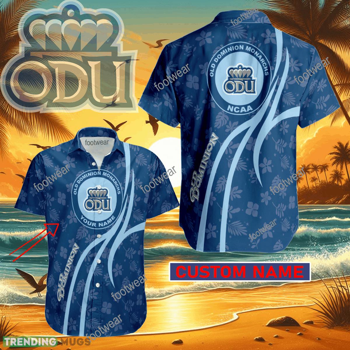 NCAA Old Dominion Monarchs Hawaiian Shirt Design Gift Fans Summer Holidays Custom Name Details: