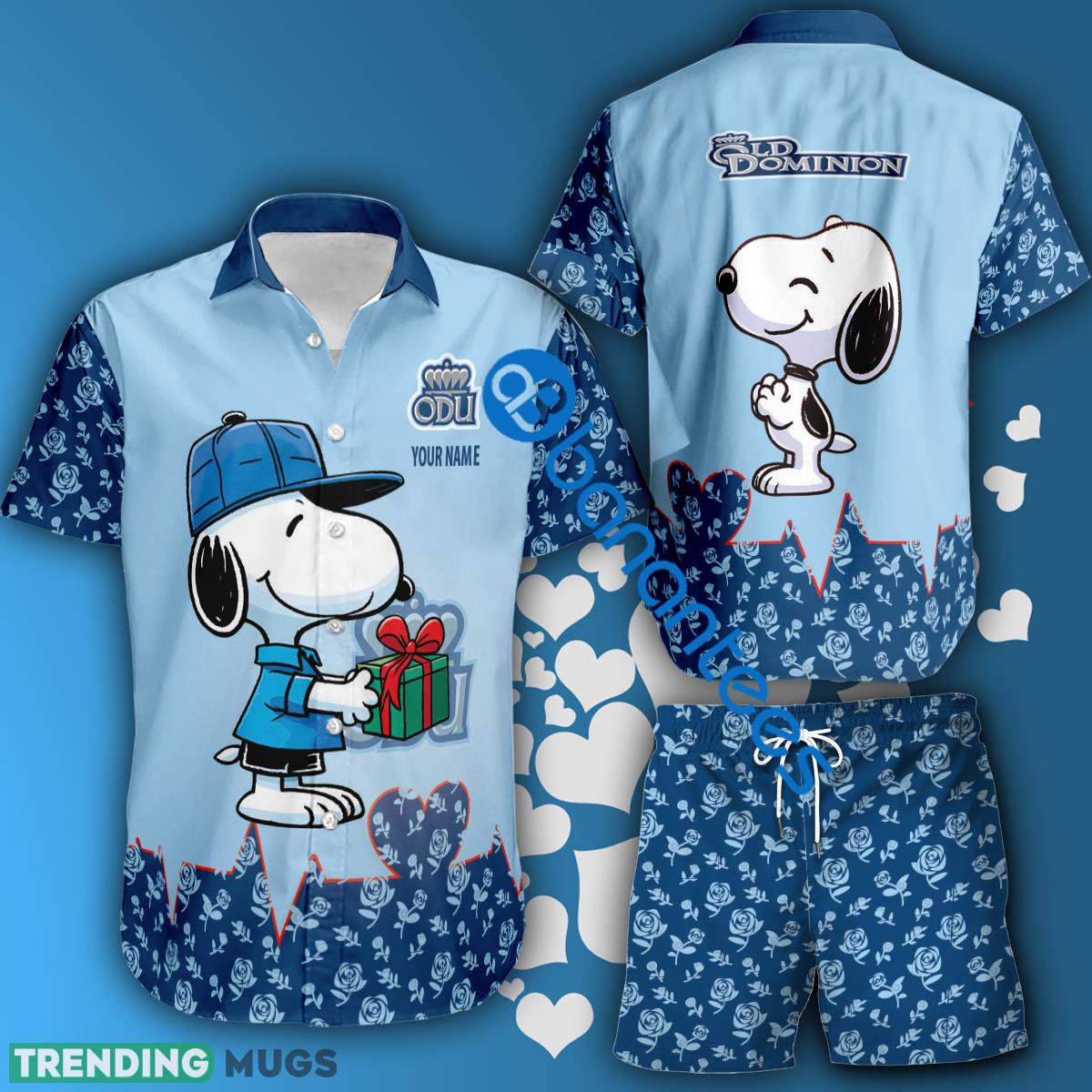 NCAA Old Dominion Monarchs Snoopy Gift Boyfriend And Girlfriend Combo Hawaiian Shirt And Short Custom Name – NCAA Old Dominion Monarchs Snoopy Gift Boyfriend And Girlfriend Combo Hawaiian Shirt And Short Custom Name