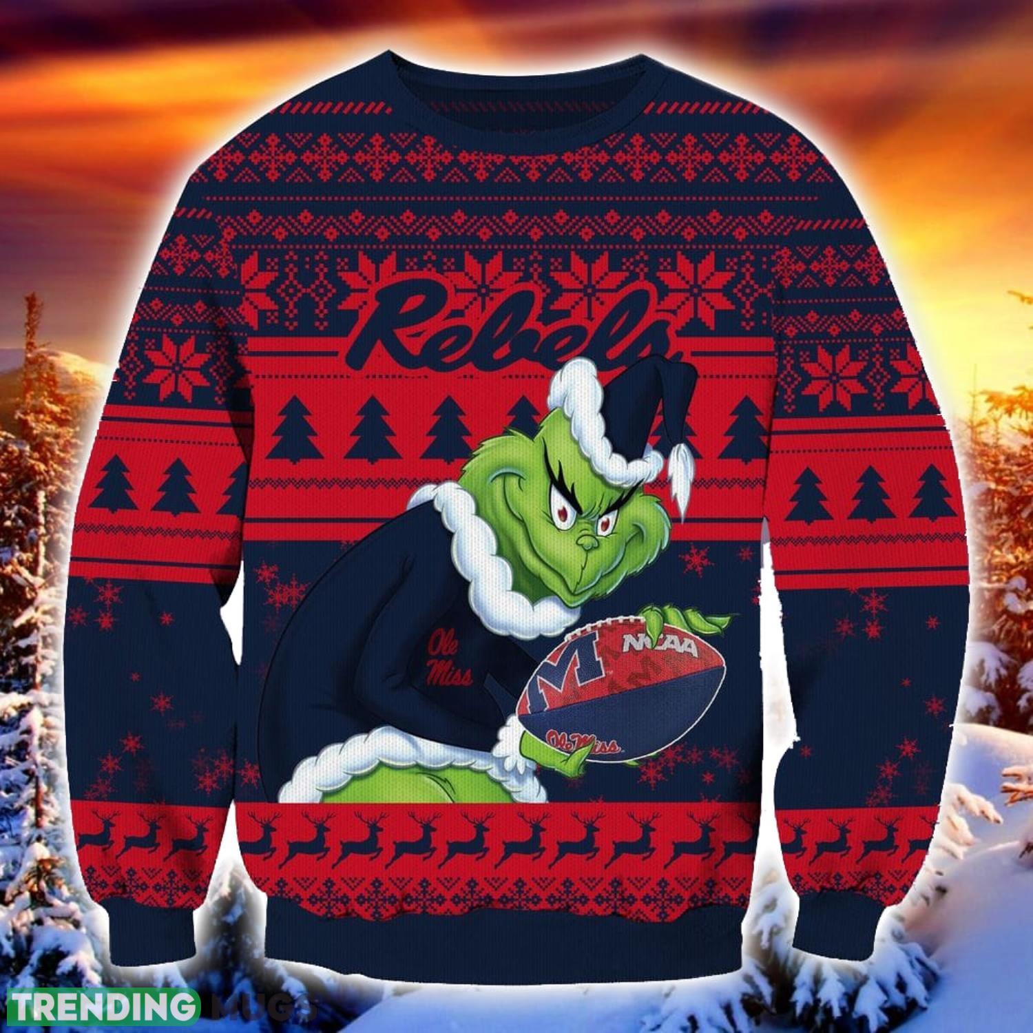 NCAA Ole Miss Rebels Grinch Ugly Christmas Sweater Trending Sweater For 2023 Christmas Holidays 3D Sweater