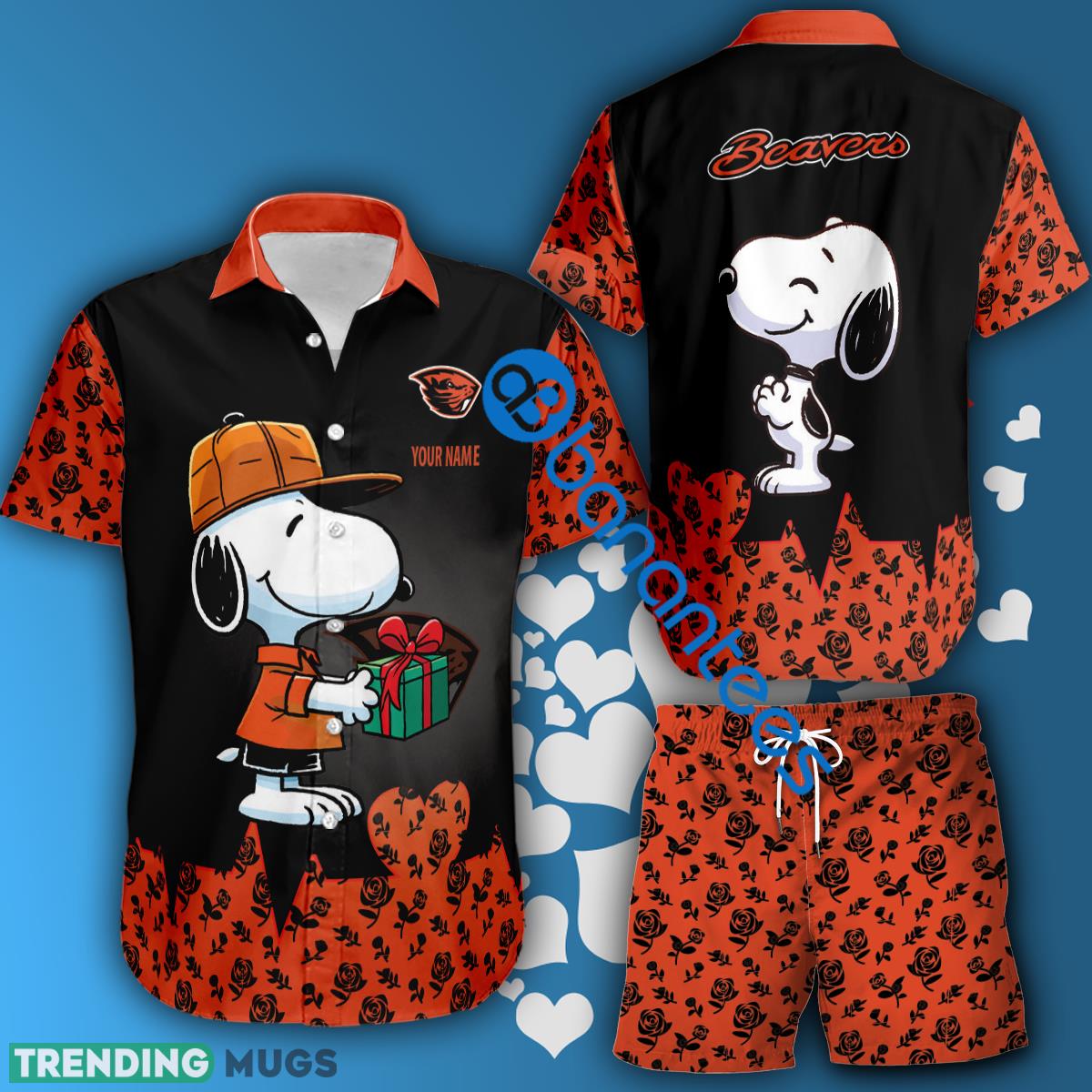NCAA Oregon State Beavers Snoopy Gift Boyfriend And Girlfriend Hawaiian Shirt And Short Set Custom Name Details: