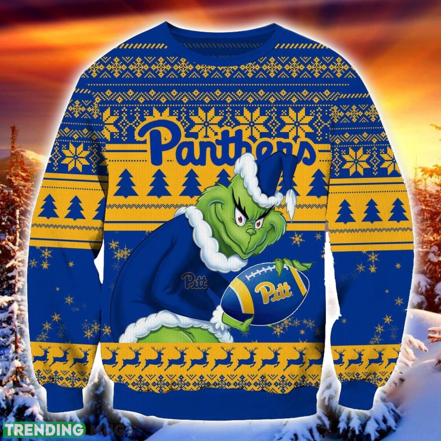 NCAA Pittsburgh Panthers Grinch Ugly Christmas Sweater Trending Sweater For 2023 Christmas Holidays Informations: