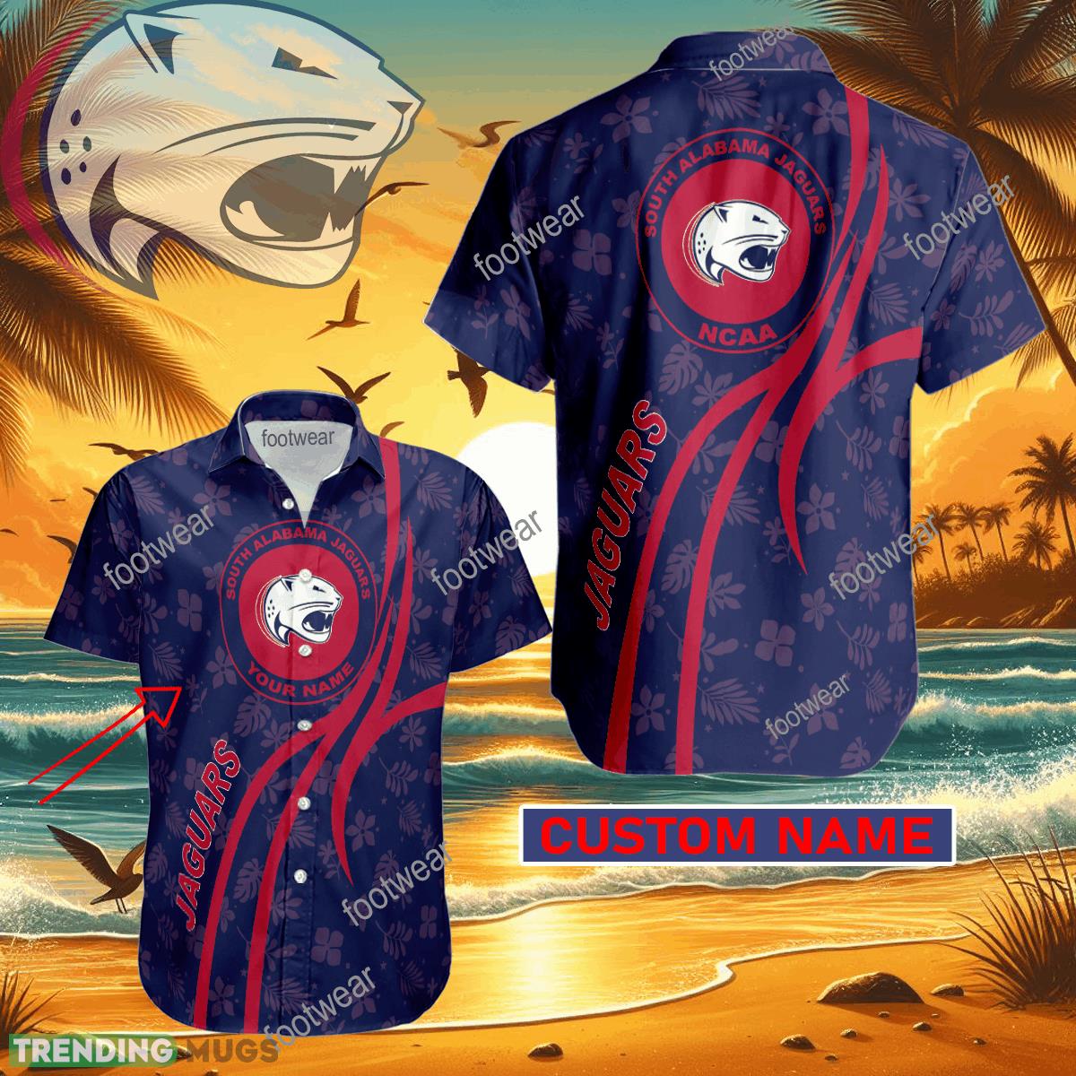 NCAA South Alabama Jaguars Hawaiian Shirt Design Gift Fans Summer Holidays Custom Name Details: