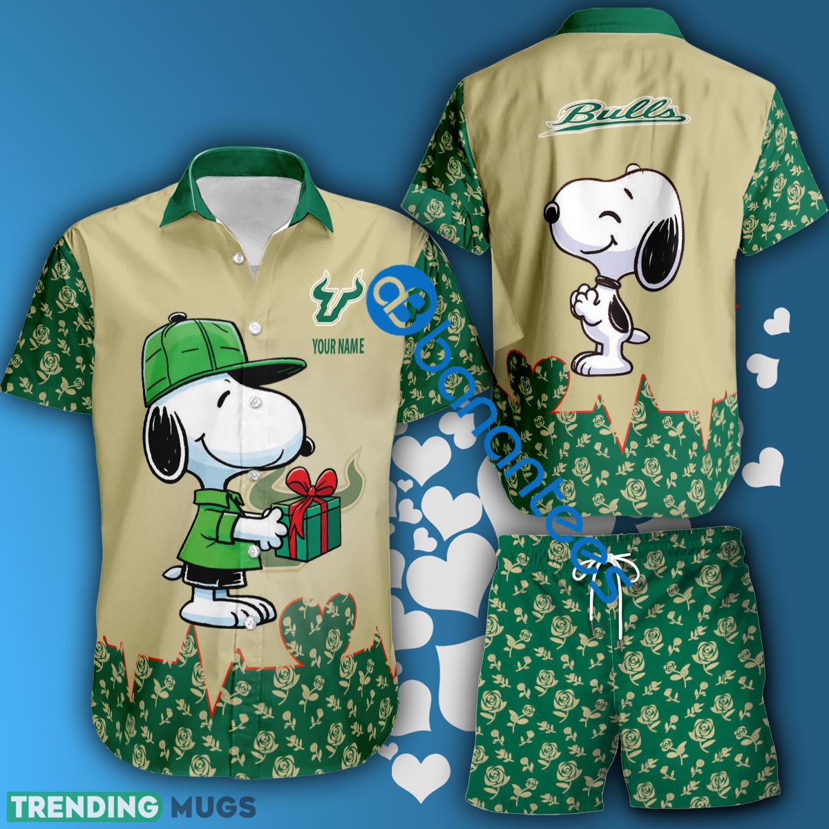 Some of the NCAA South Florida Bulls Snoopy Gift Boyfriend And Girlfriend Hawaiian Shirt And Short Set Custom Name photos