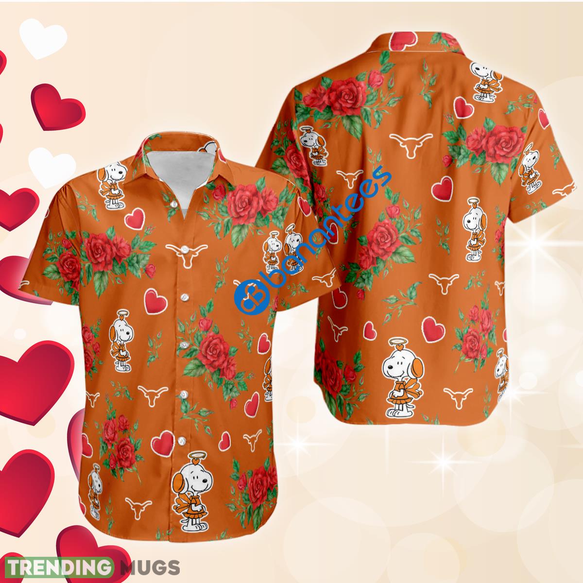 Crafted with utmost attention to detail, this Hawaiian shirt features a vibrant all-over print that beautifully combines the beloved Texas Longhorns logo and Snoopy in a cute rose love design. The result? A unique and eye-catching shirt that is sure to turn heads wherever you go.