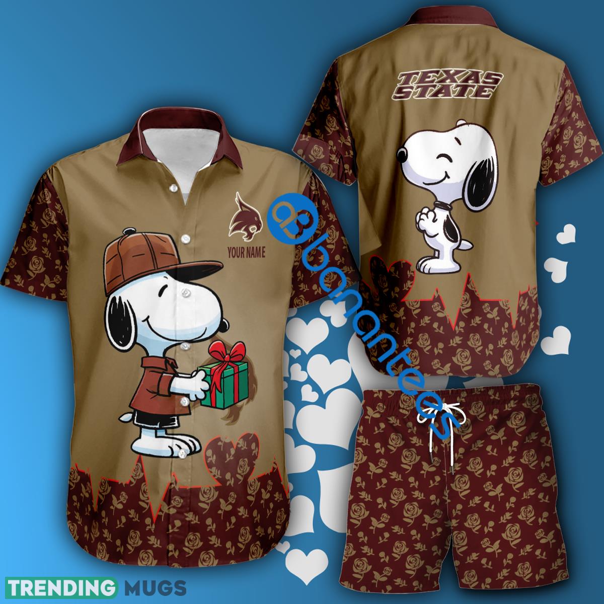 NCAA Texas State Bobcats Snoopy Gift Boyfriend And Girlfriend Combo Hawaiian Shirt And Short Custom Name – NCAA Texas State Bobcats Snoopy Gift Boyfriend And Girlfriend Combo Hawaiian Shirt And Short Custom Name