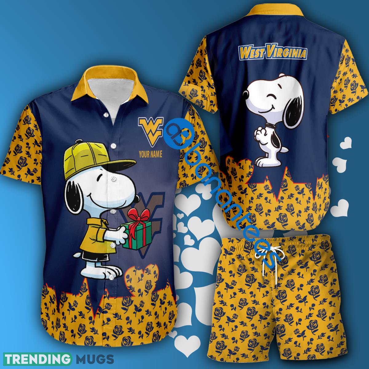 NCAA West Virginia Mountaineers Snoopy Gift Boyfriend And Girlfriend Hawaiian Shirt And Short Set Custom Name Details: