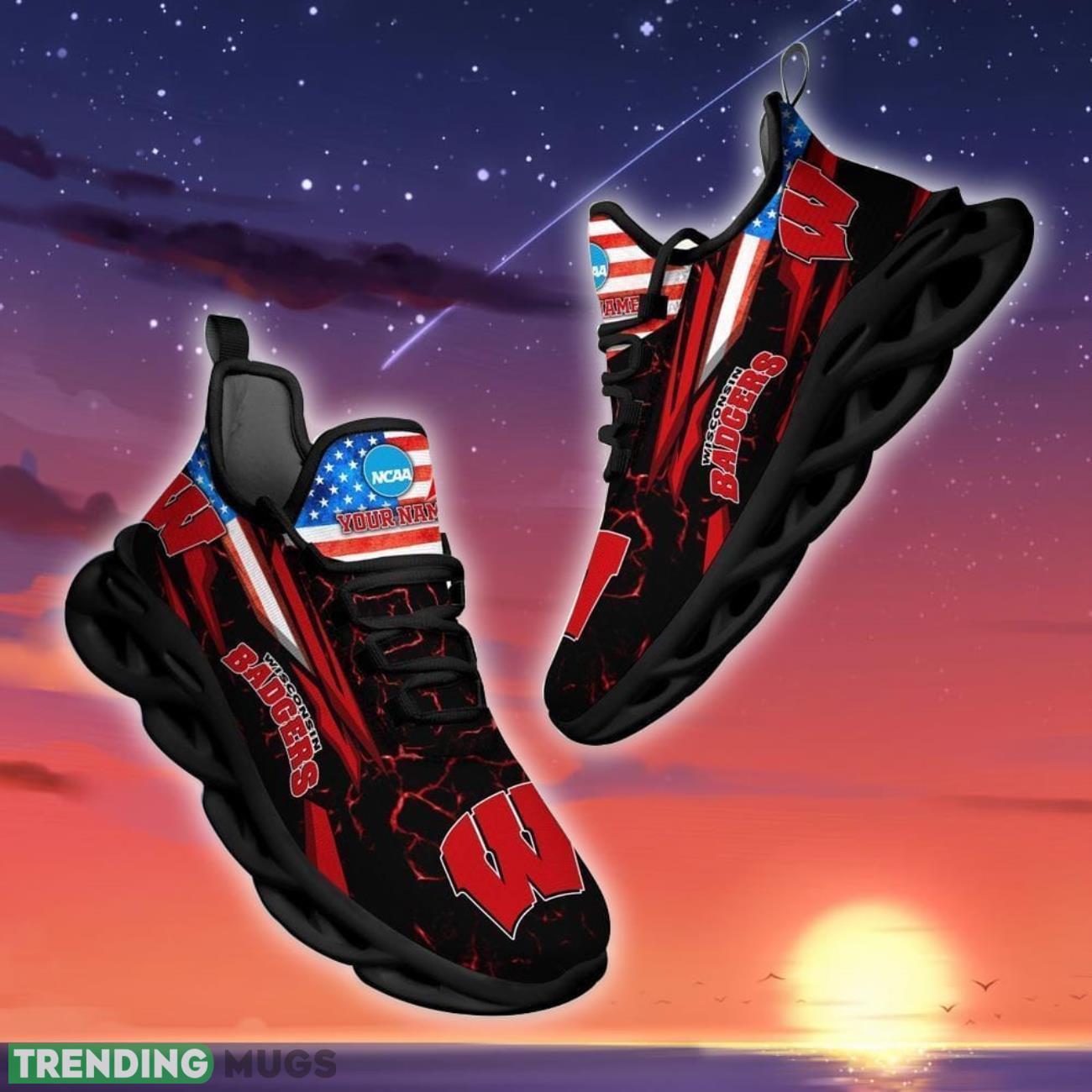 NCAA Wisconsin Badgers Logo And Flag Custom Name Max Soul Shoes Gift For Fan information: