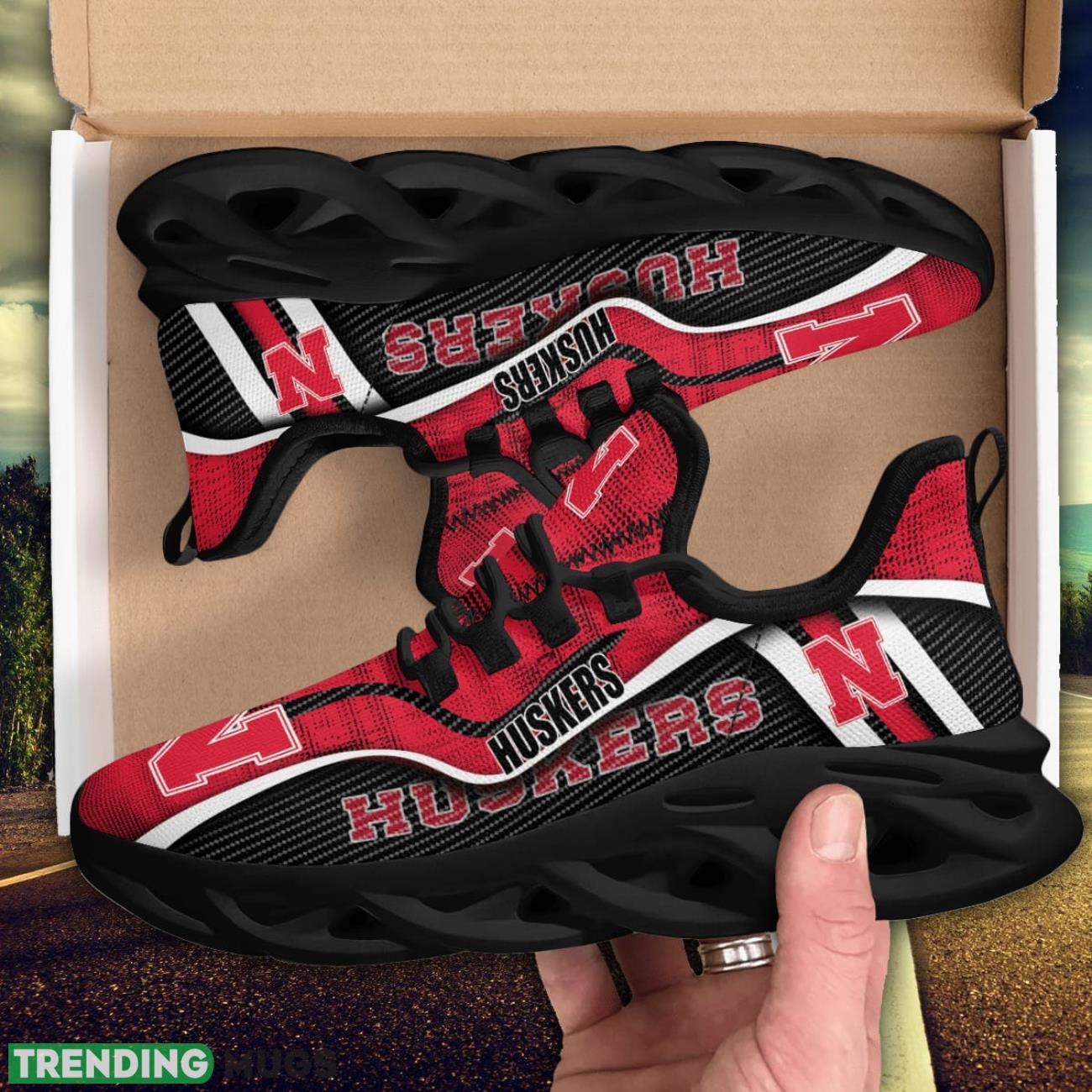 This Nebraska Cornhuskers Special Sport Shoes Max Soul Sneakers For Fans is a breathable, lightweight, and comfortable casual outdoor shoe that has a unique design. It is made of a mesh fabric which makes it sweat absorbent and breathable, while the rubber bottom ensures traction, comfort, and durability. It is available in two colors: black or white sole. There are two styles of shoelace holes so you can choose your preference.