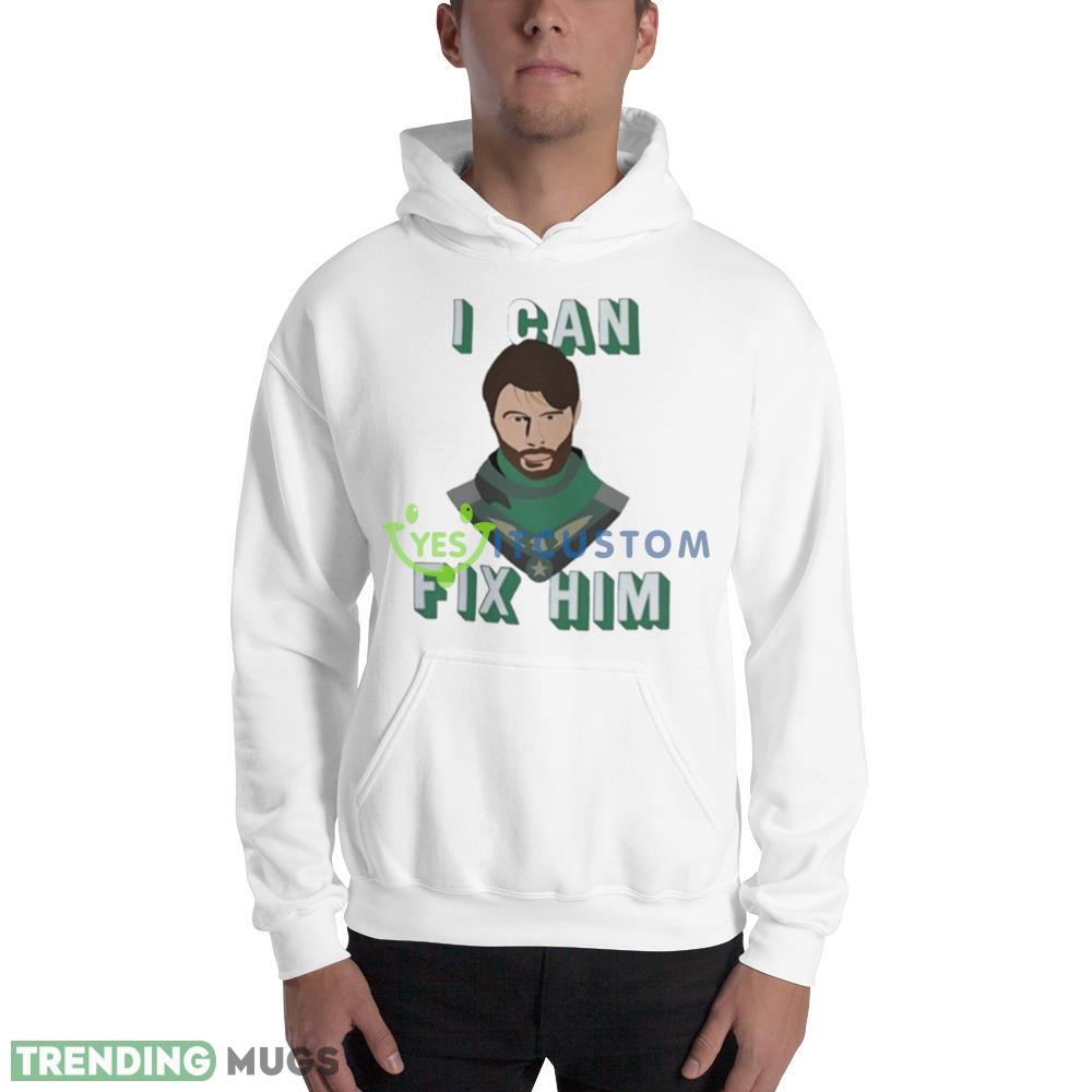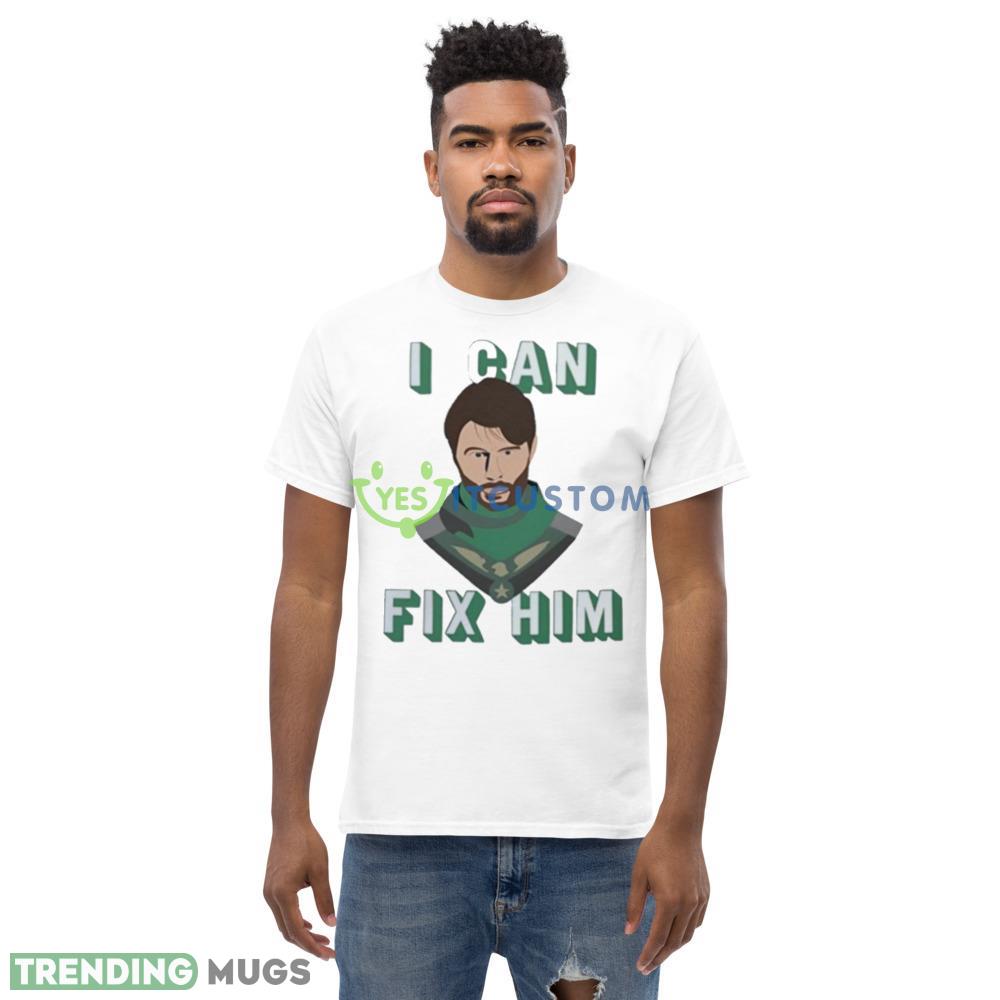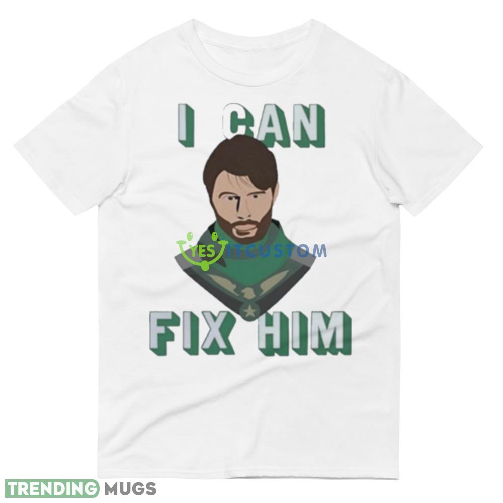 Crafted with the finest quality fabric, this shirt is both comfortable and durable, making it perfect for everyday wear. The design features a bold and striking graphic of Soldier Boy, a popular character from the world of comics. The words “I Can Fix Him” are emblazoned on the front, making a bold statement and showing off your inner superhero.
