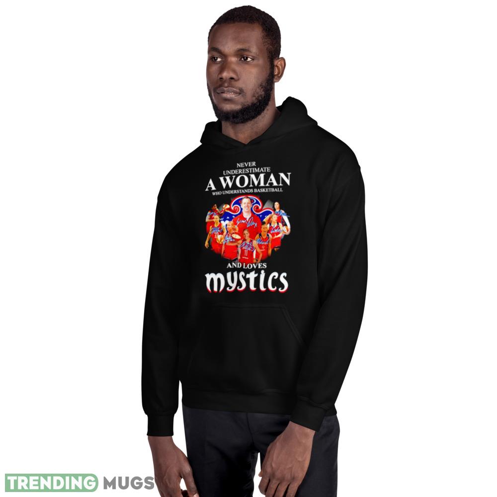 Are you a basketball enthusiast who loves to watch games and keep up with the latest news and trends in the world of basketball? Do you also happen to be a woman who is proud of her skills, knowledge, and passion for the game? If so, you’ll absolutely adore our “Never underestimate a woman who understands basketball and loves Mystics signatures shirt”!