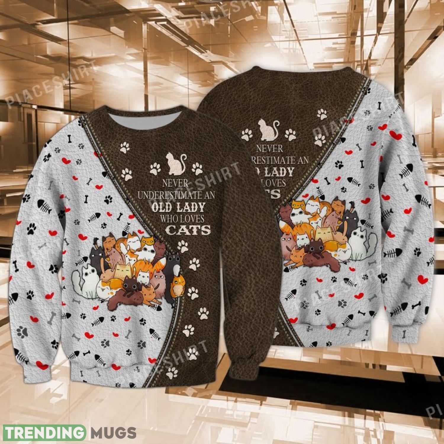 Never Underestimate An Old Lady Who Loves Cats 3D Full Print Ugly Sweater Christmas Gift Sweater Informations: