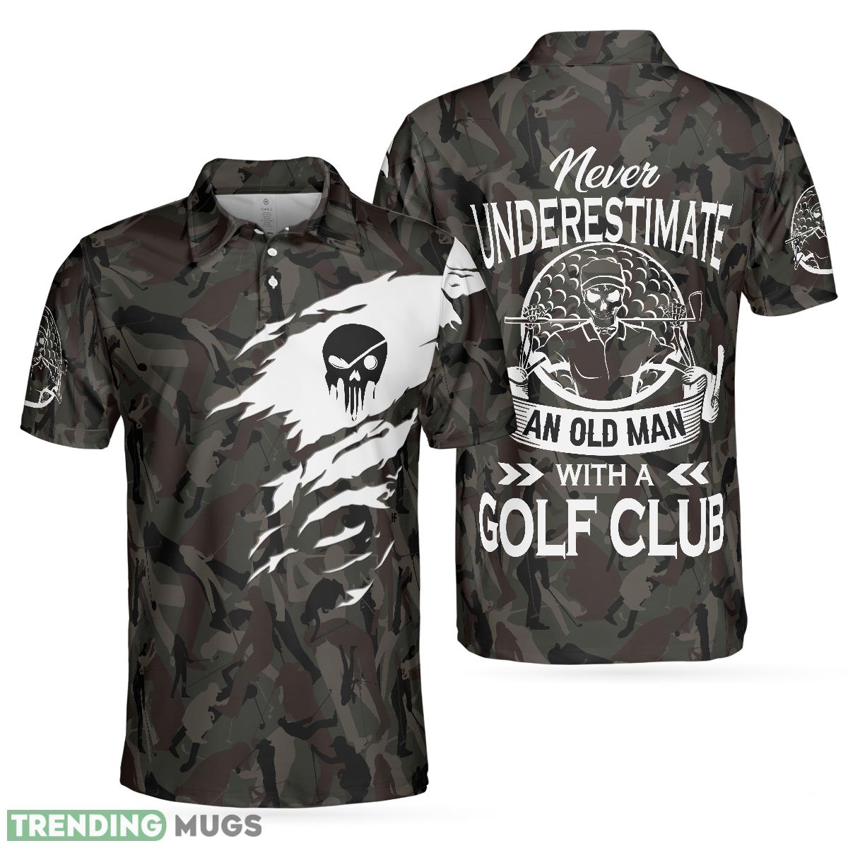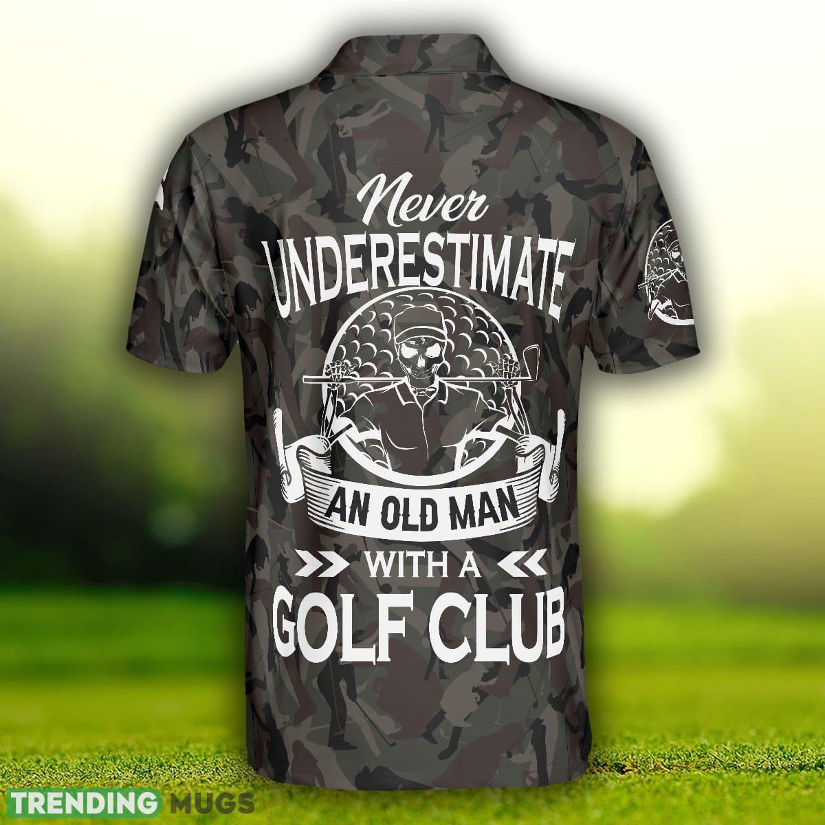 Never Underestimate An Old Man Camouflage Pattern Skull, Army Skeleton Golfer, Camo Golf Shirt Polo Shirt Information: