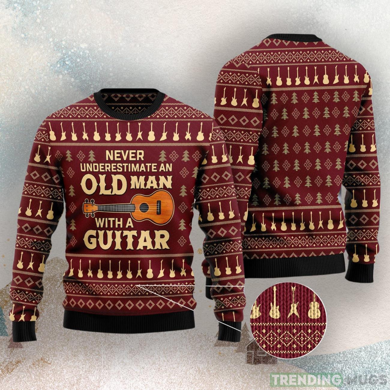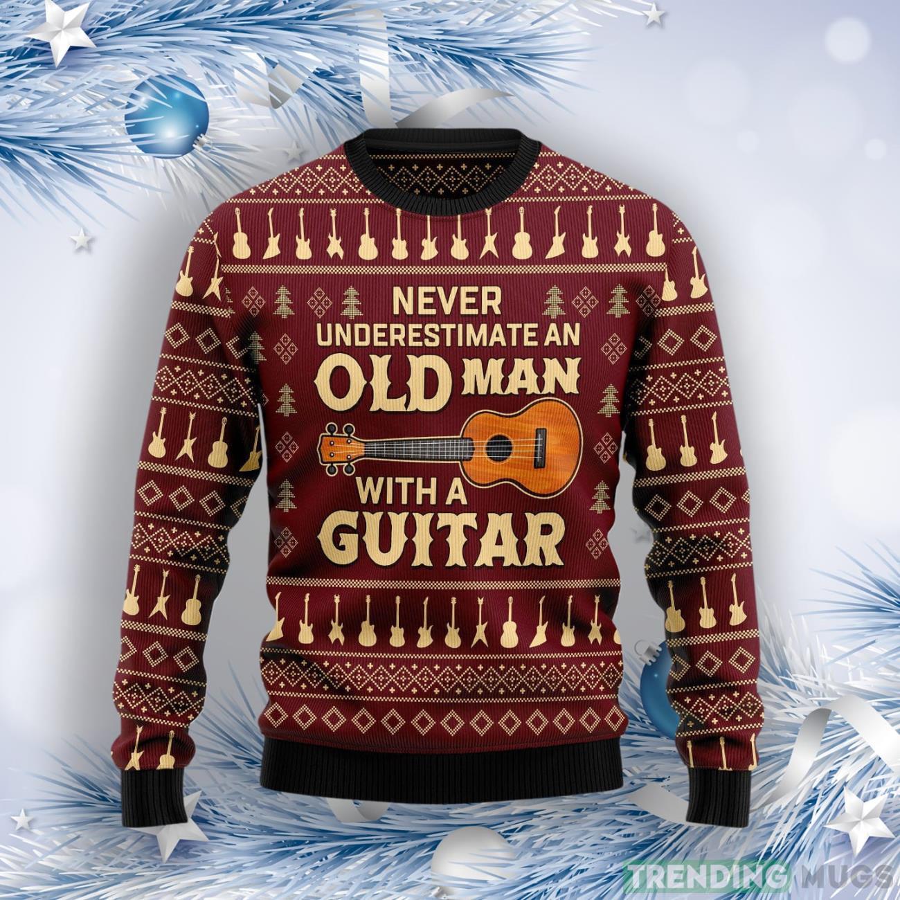 Never Underestimate An Old Man With A Guitar Ugly Christmas Sweater Informations: