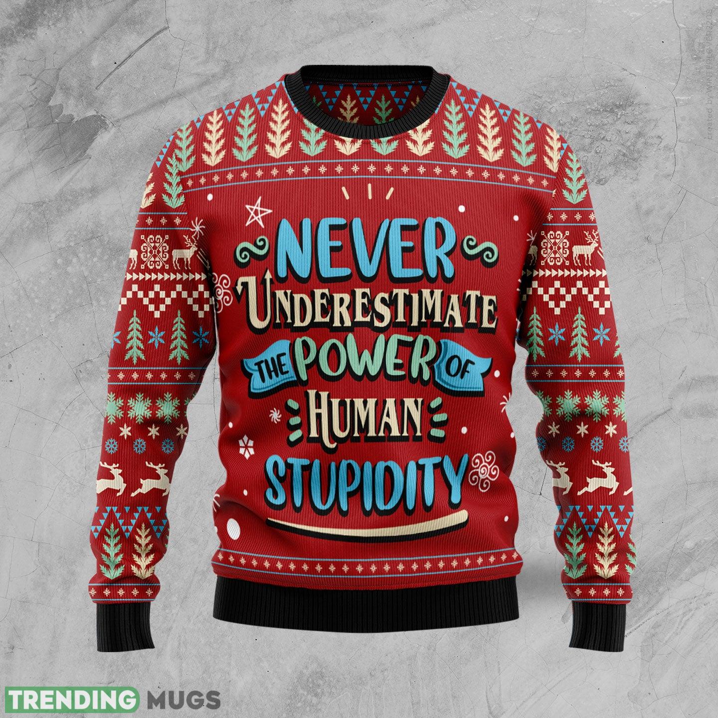 Never Underestimate The Power Of Human Stupidity Ugly Christmas Sweater Gift Men Women – Never Underestimate The Power Of Human Stupidity Ugly Christmas Sweater Gift Men Women_1