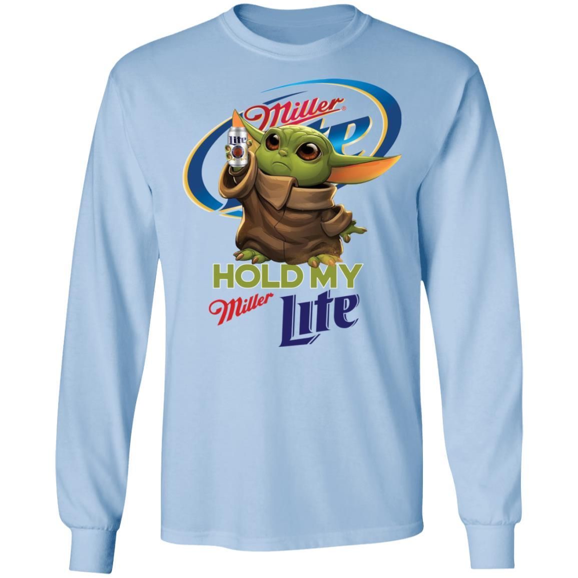 New Baby Yoda Hold My Miller Lite Shirt. The shirt available in t-shirt, hoodies, long sleeve and sweatshirt.