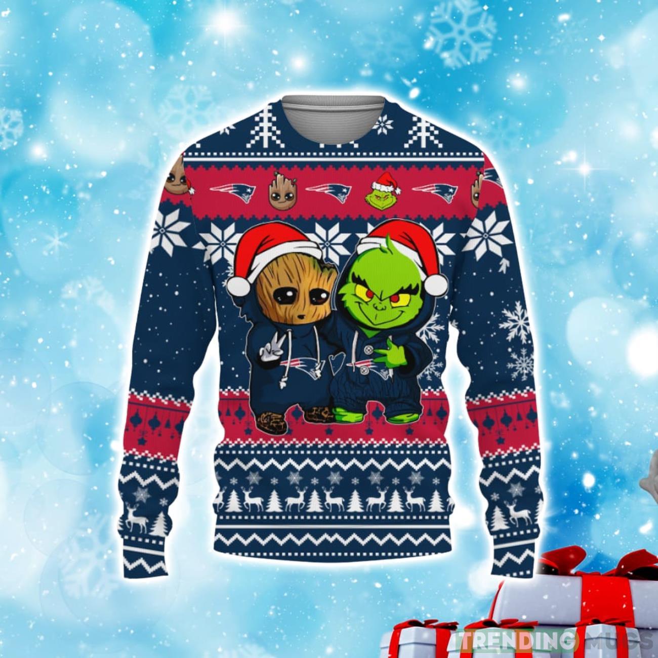 New England Patriots Baby Groot And Grinch Best Friends Football American Ugly Christmas Sweater Product Photo 1