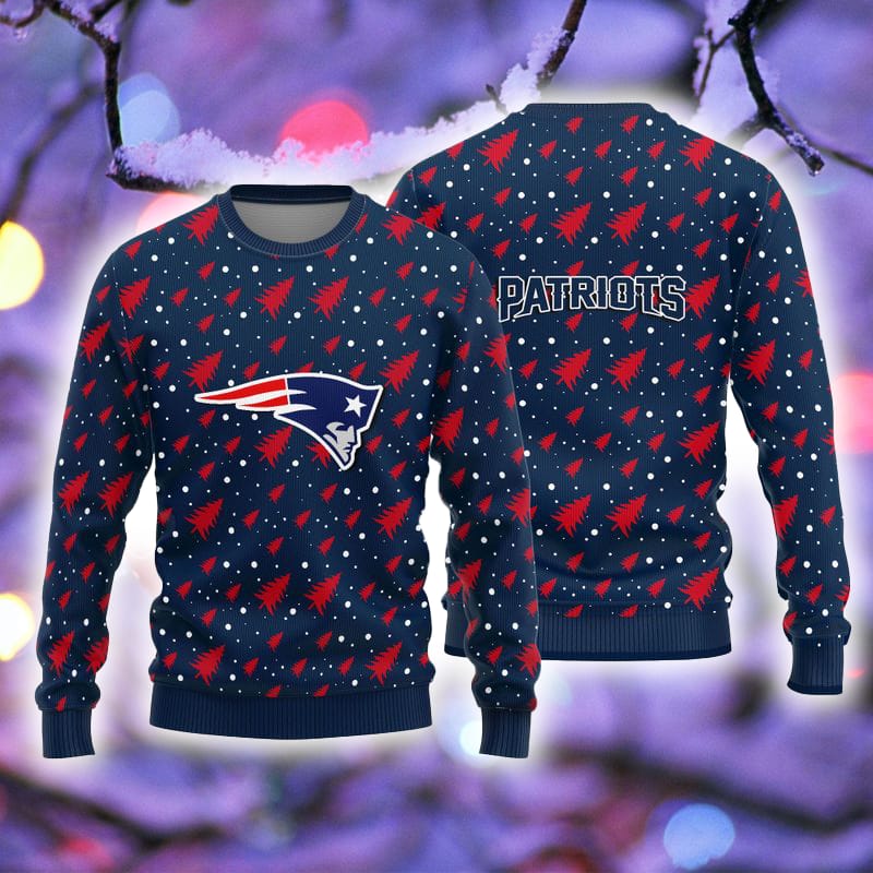 New England Patriots Christmas Pine Tree Patterns Pattern Knitted Ugly Christmas Sweater AOP Gift For Men And Women Informations: