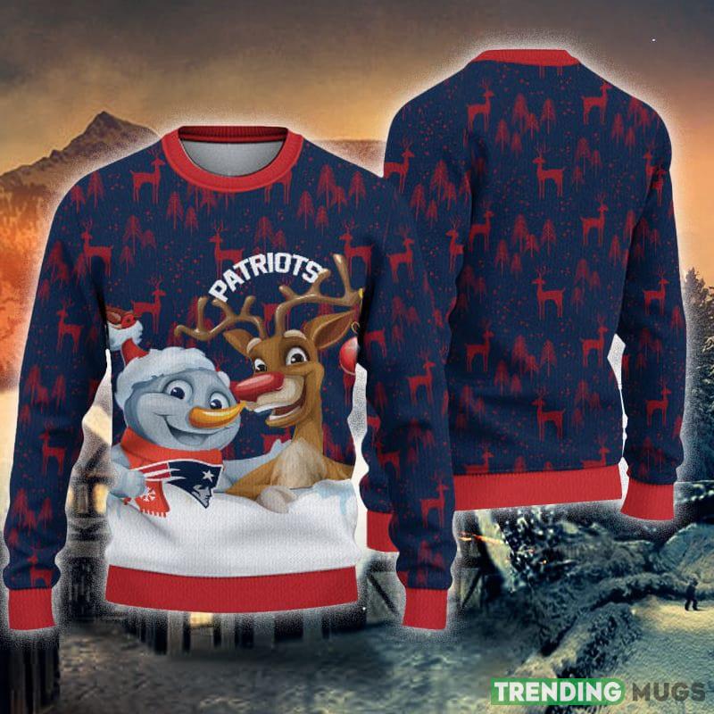 New England Patriots Christmas Reindeer Ugly Christmas Sweater Thermos AOP Gift For Fans 3D Sweater