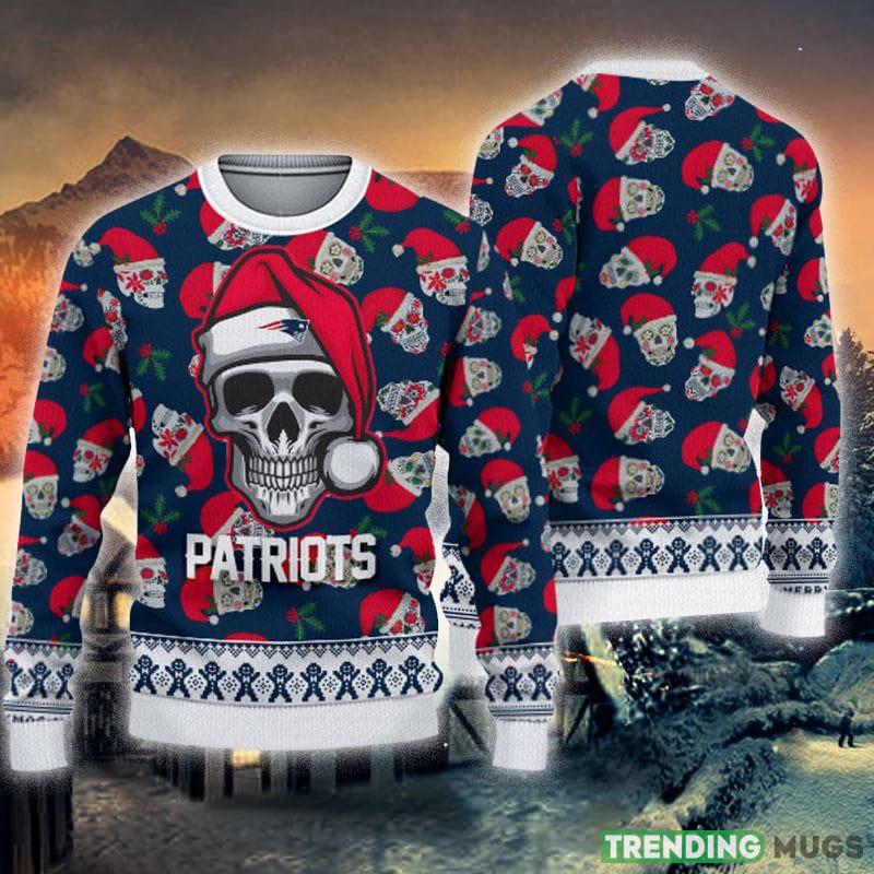 Embrace the holiday season with a touch of Patriots spirit and order your New England Patriots Christmas Skull Knitted Ugly Christmas Sweater today!