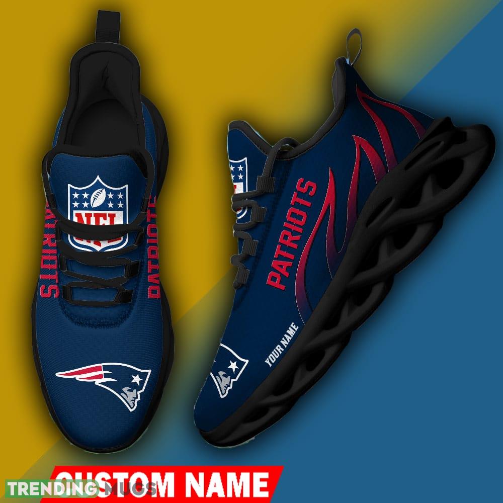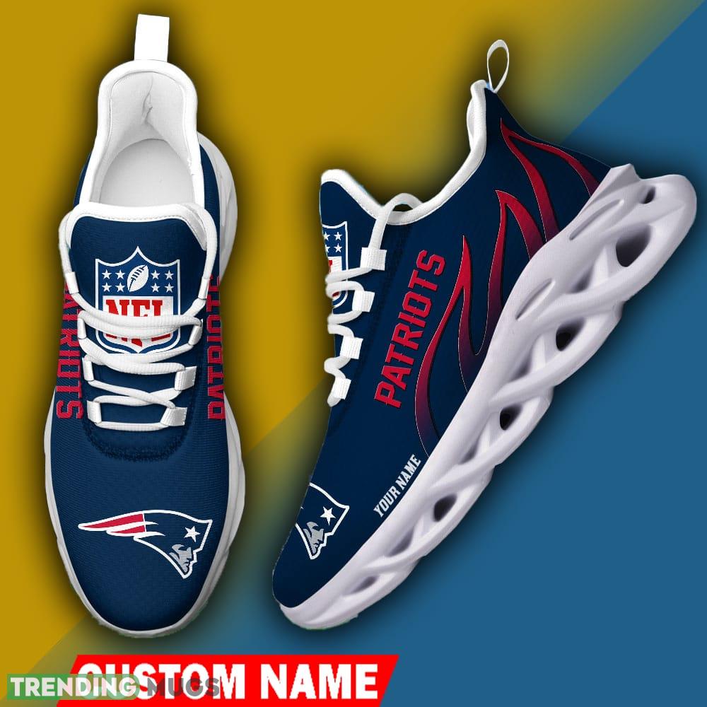 New England Patriots Custom Name NFL Logo Flame Max Soul Shoes For Men Women information: