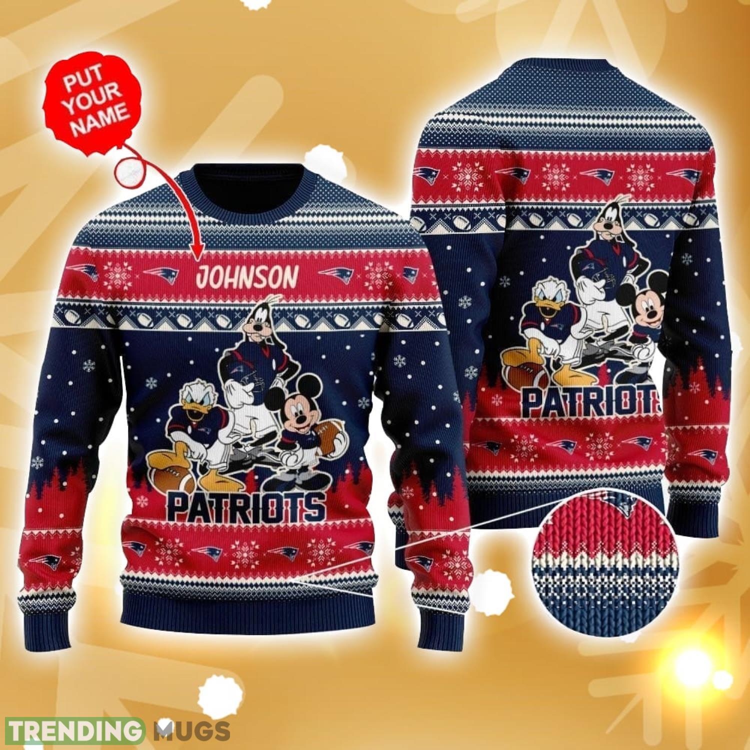 New England Patriots Disney Donald Duck Mickey Mouse Goofy Custom Name Sport Fans Christmas Gift Ugly Christmas Sweater Product Photo 1