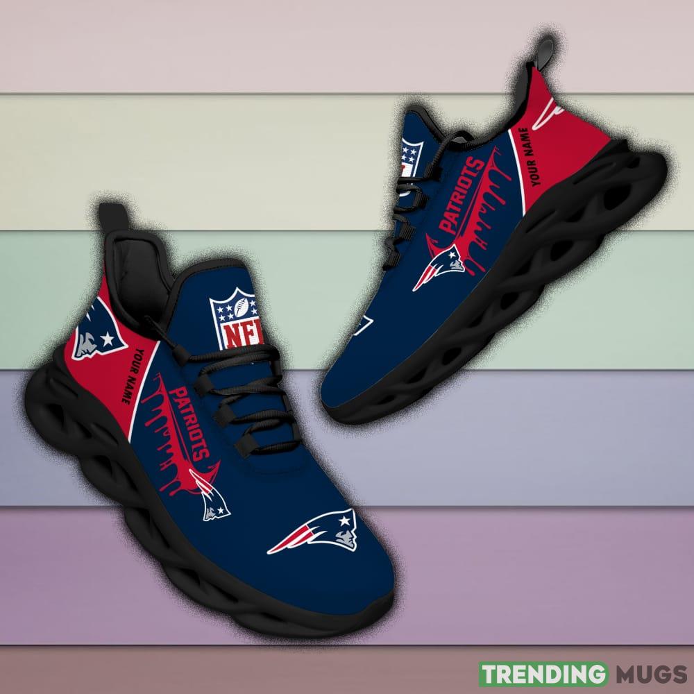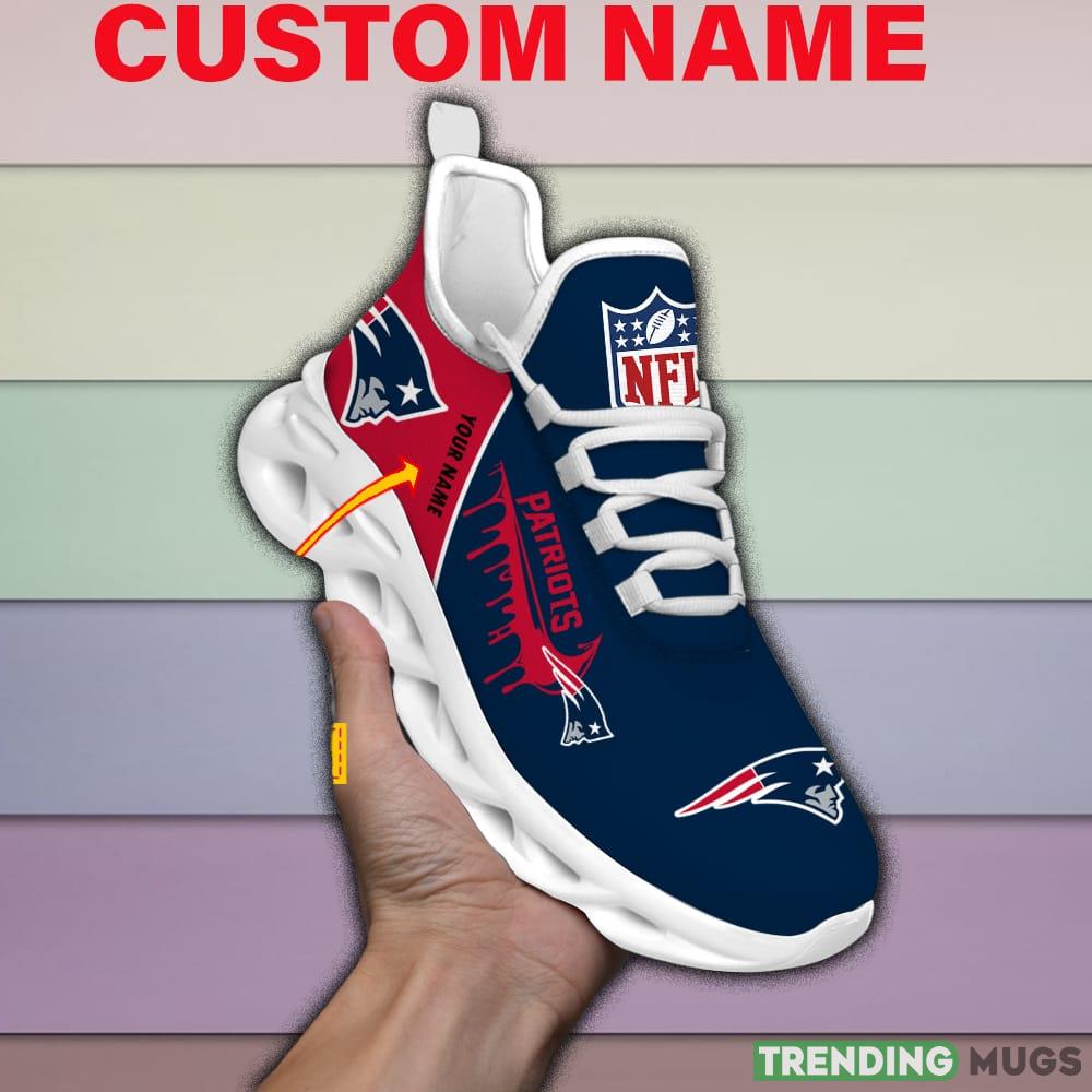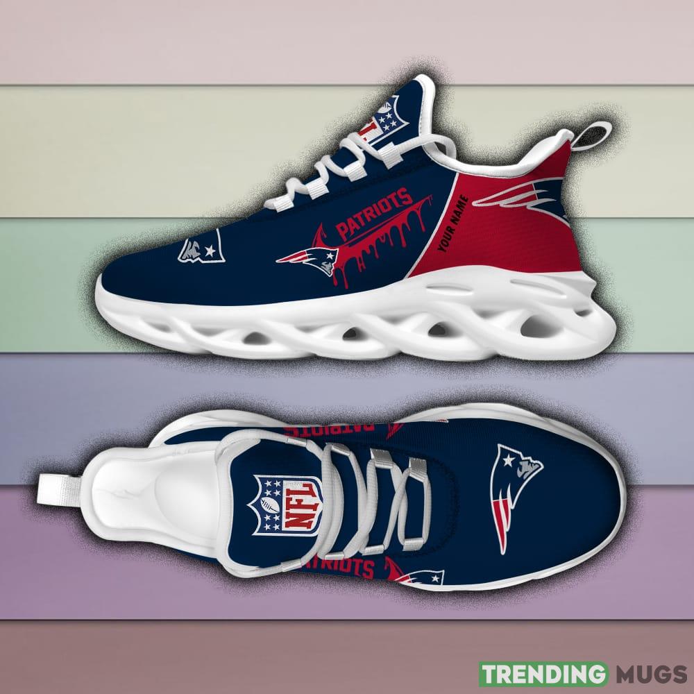 Get ready to show off your team spirit with the New England Patriots Drip Logo NFL Max Soul Shoes! These custom name sneakers are perfect for both men and women who love running and want to support their favorite football team in style.