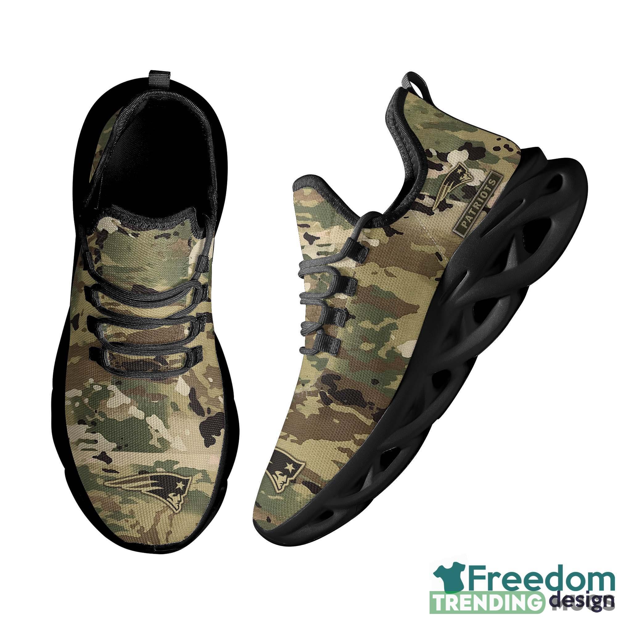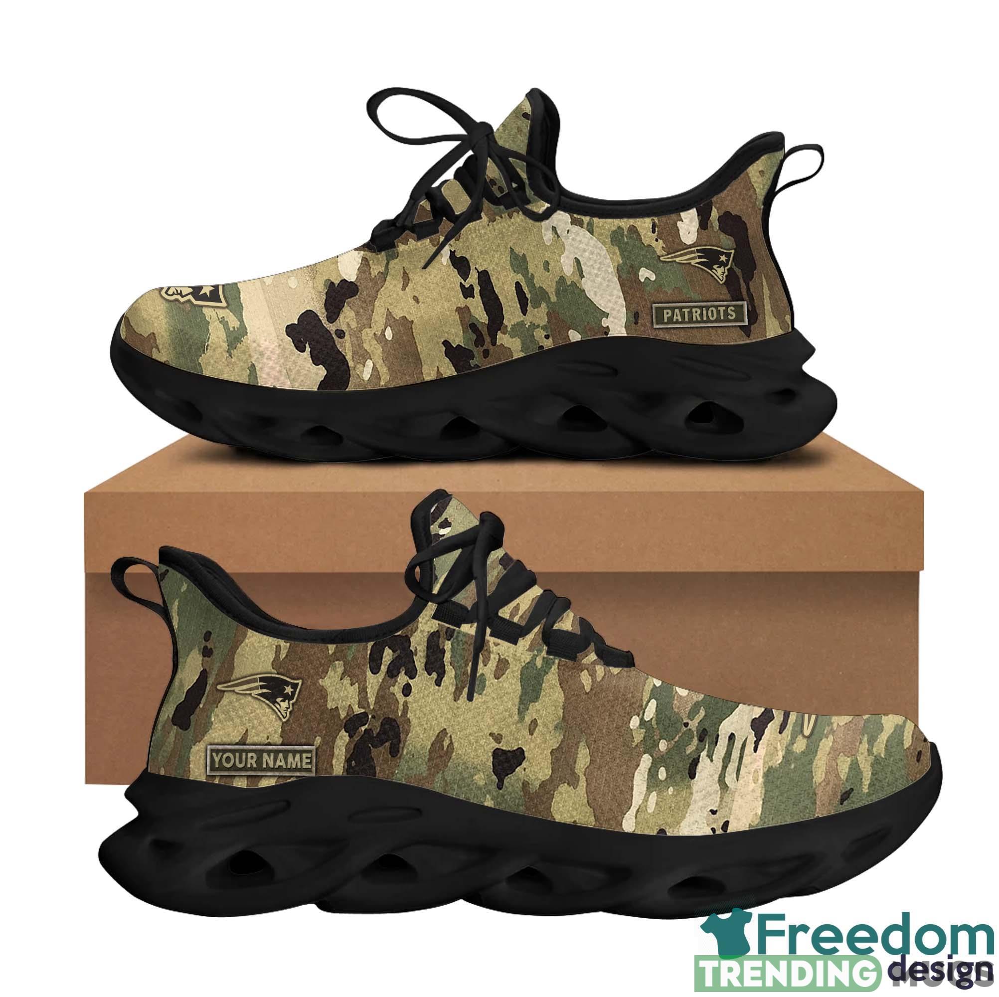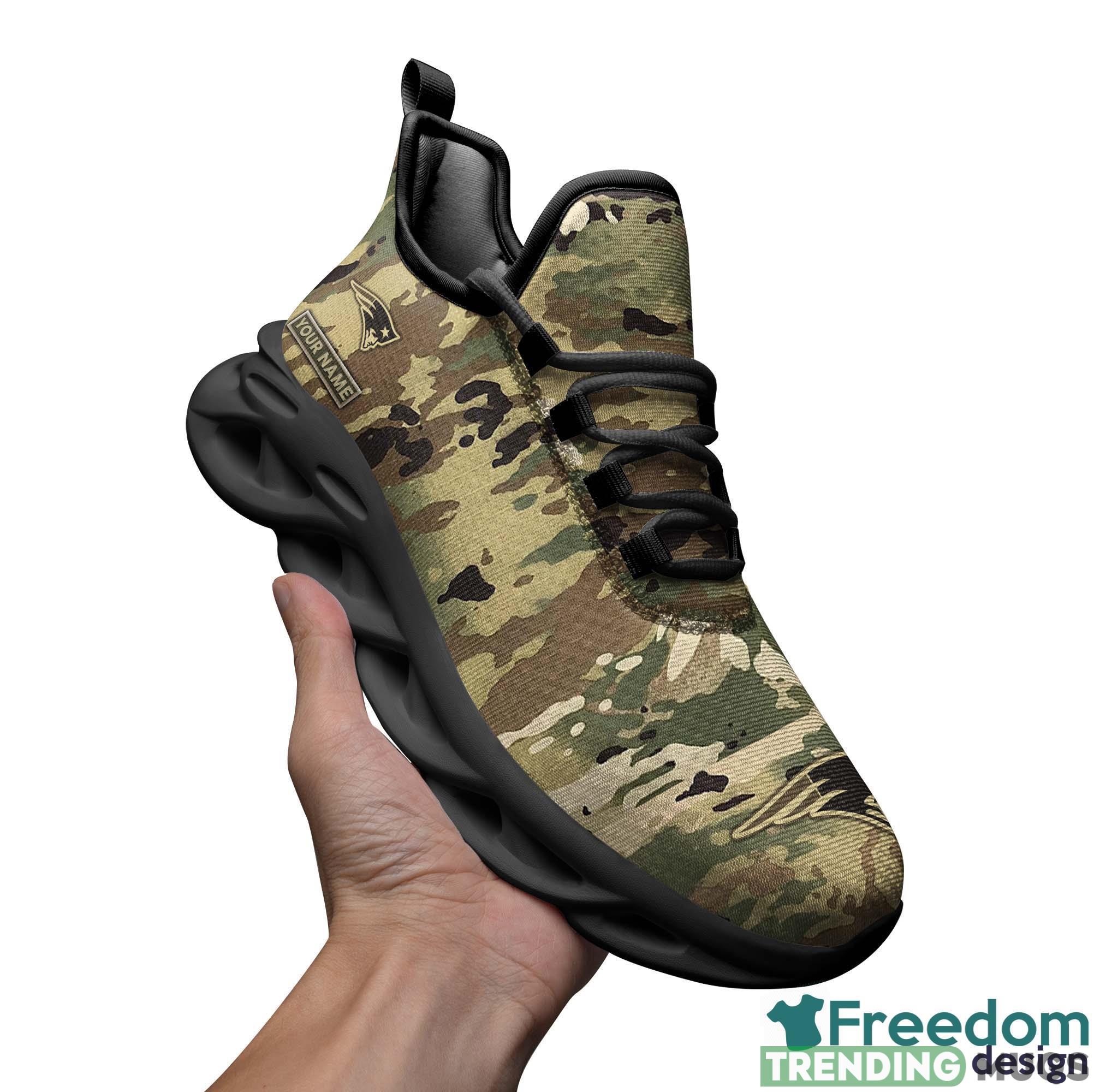 Calling all New England Patriots fans! Step up your game with our New England Patriots Hunting Camo Style Max Soul Shoes. These personalized chunky sneakers are the ultimate accessory for any die-hard fan. Show off your team pride in style with these eye-catching shoes.