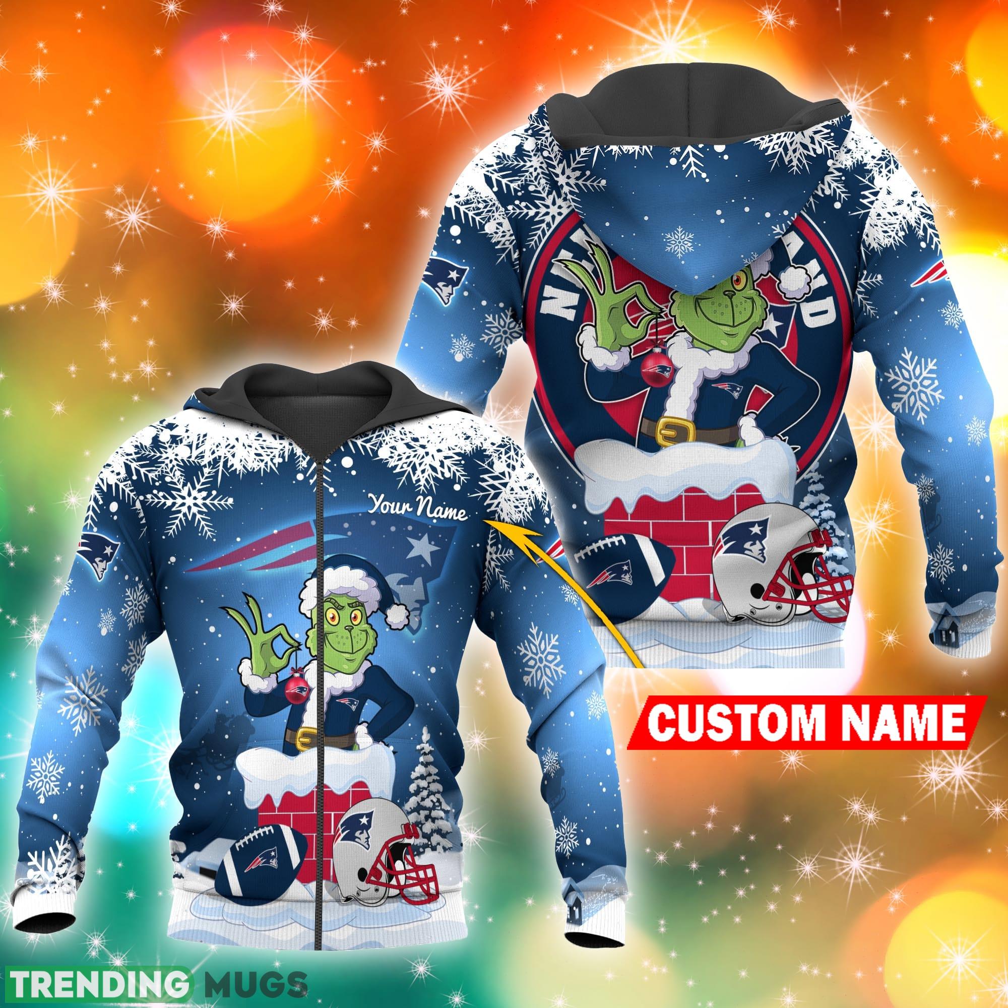 New England Patriots NFL Christmas Grinch in Chimney 3D Hoodie Pullover Prints Custom Name Information
