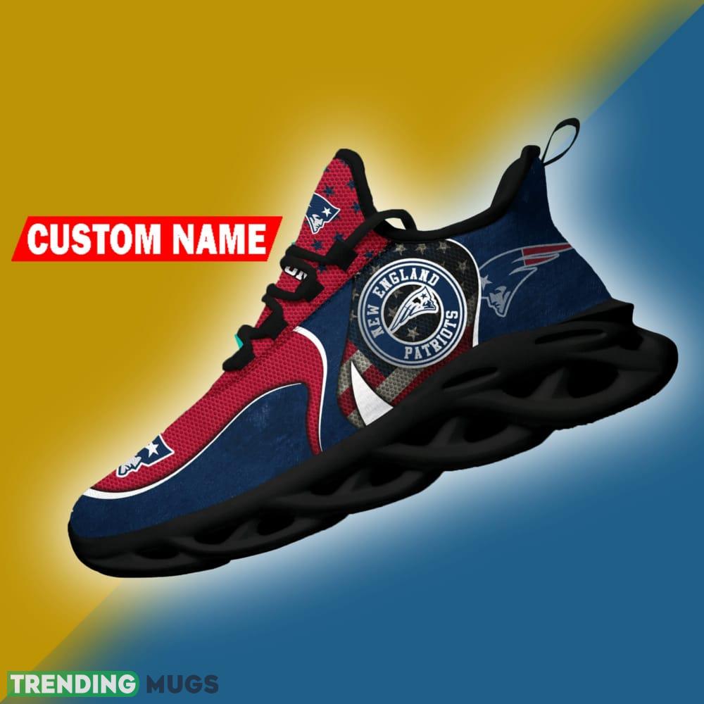 So why settle for ordinary footwear when you can elevate your game day look with the New England Patriots NFL Logo Flag Running Shoes Personalized Max Soul Sneakers? Get ready to turn heads and show off your team spirit like never before.