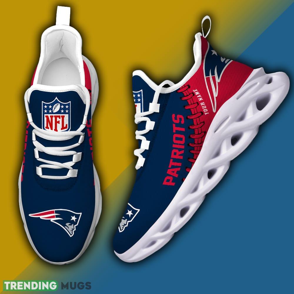 Don’t miss out on this opportunity to show off your Patriots pride in a unique and customized way. Order your New England Patriots NFL Logo New Style Max Soul Shoes Custom Name For Fans today and step up your fan gear like never before!