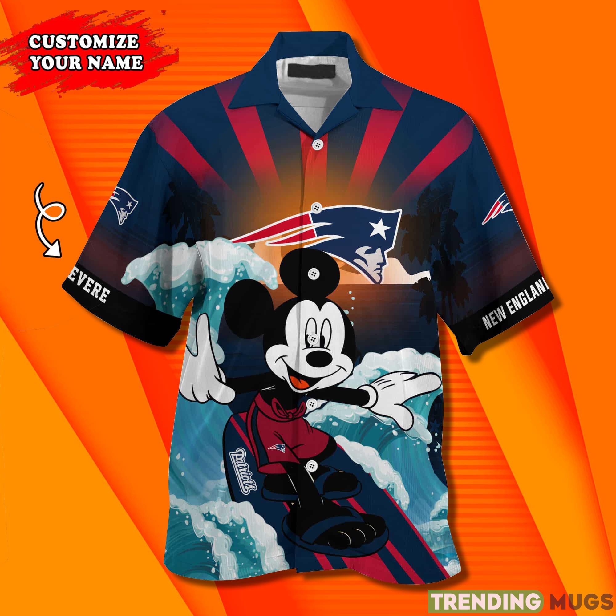 New England Patriots NFL Mickey Mouse Custom Name Hawaiian Shirt Details: