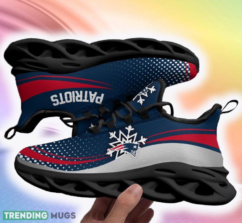 New England Patriots Pacific Ugly Christmas Snow Flowers Blue Color Sneakers Max Soul Shoes For Fans Gift – New England Patriots Christmas Color Sneakers Max Soul Shoes For Fans Gift