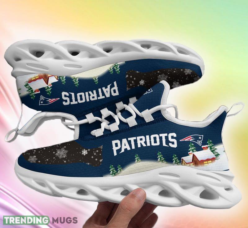 New England Patriots Print Party Ugly Christmas Snow Flowers Blue Color Sneakers Max Soul Shoes For Fans Gift – New England Patriots Christmas Color Sneakers Max Soul Shoes For Fans Gift